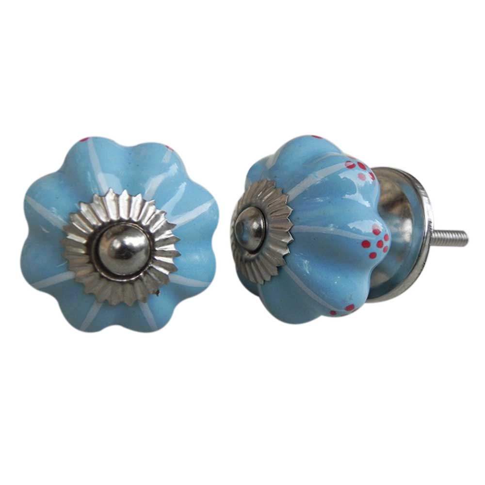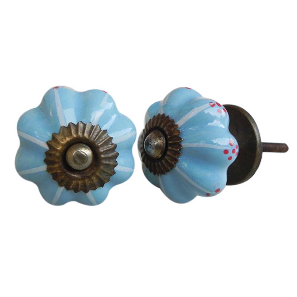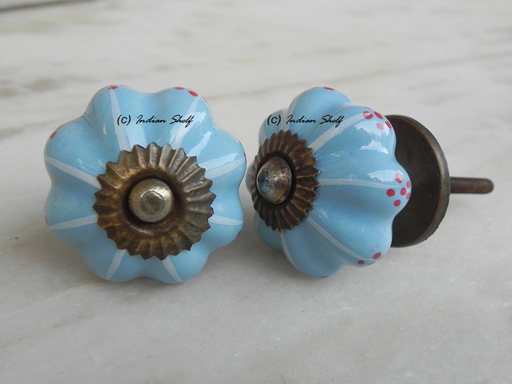 Sky Blue White Striped melon shape knob. Ideal for kitchen cabinets, kitchen drawers, dining room, bed room, chest drawers, dressing tables, almirah