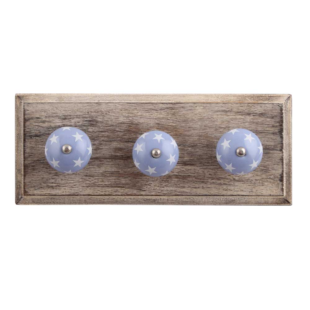 Slate Blue Star Ceramic Wooden Hook. A Perfect Complement to the Soft Tone of the Wood are these White Traditional Hat & Coat Hook Made of Genuine Porcelain and Brass. It can be use to Hang Jewellery, Leashes, Towels, Scarves, Light Weight Sweaters, Caps Etc.