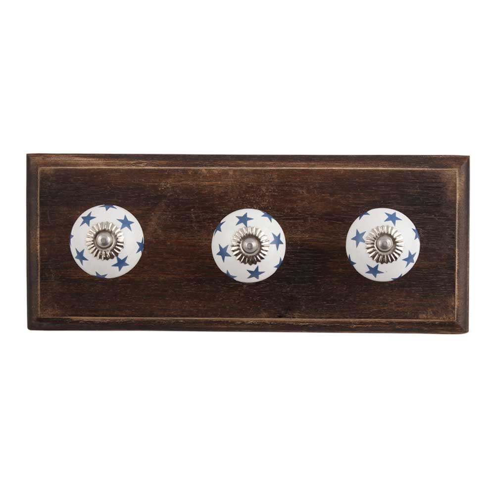 Slate Blue Star Ceramic Wooden Hook. A Perfect Complement to the Soft Tone of the Wood are these White Traditional Hat Coat Hook Made of Genuine Porcelain and Brass. It can be use to Hang Jewellery, Leashes, Towels, Scarves, Light Weight Sweaters, Caps Etc.