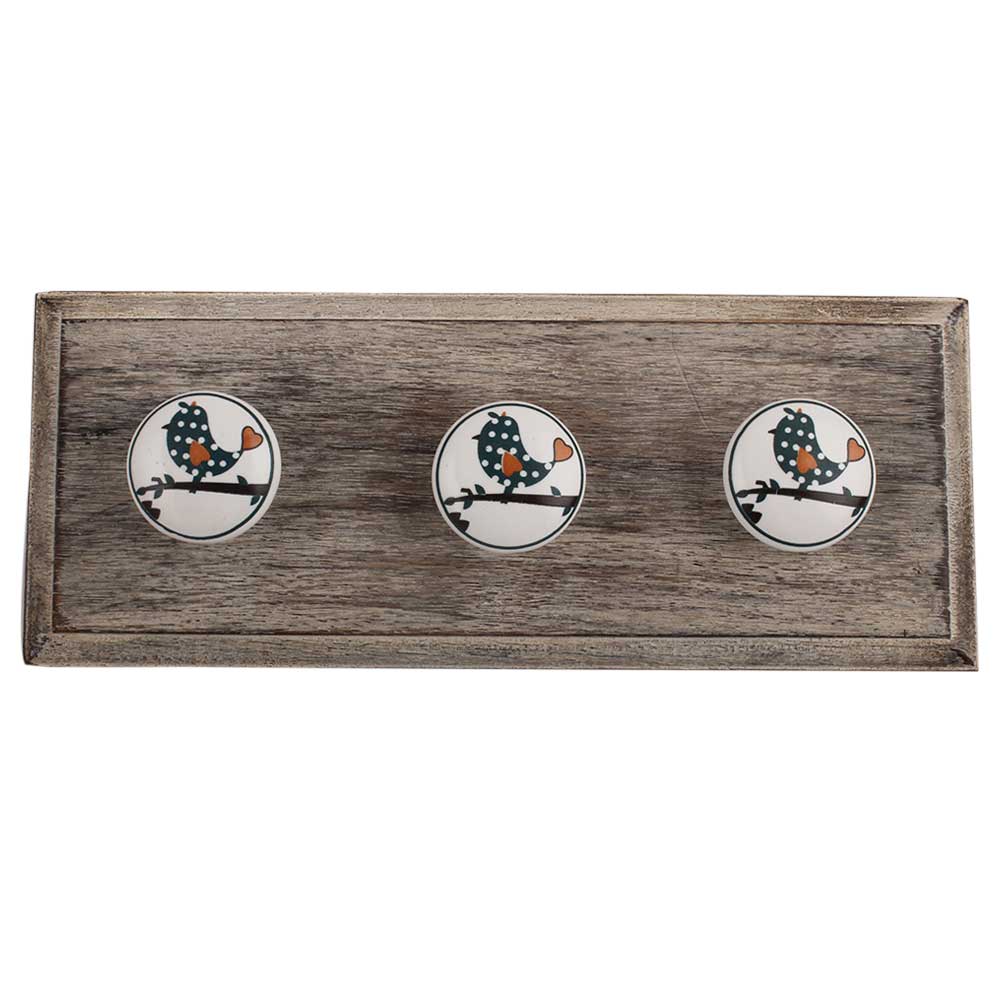 Slate Green Bird Ceramic Flat Wooden Hook. A Perfect Complement to the Soft Tone of the Wood are these White Traditional Hat & Coat Hook Made of Genuine Porcelain and Brass. It can be use to Hang Jewellery, Leashes, Towels, Scarves, Light Weight Sweaters, Caps Etc.