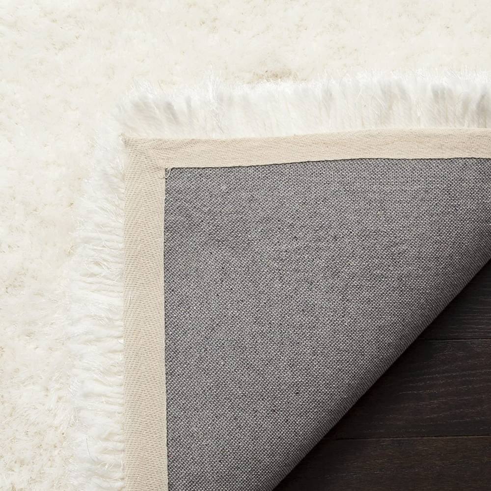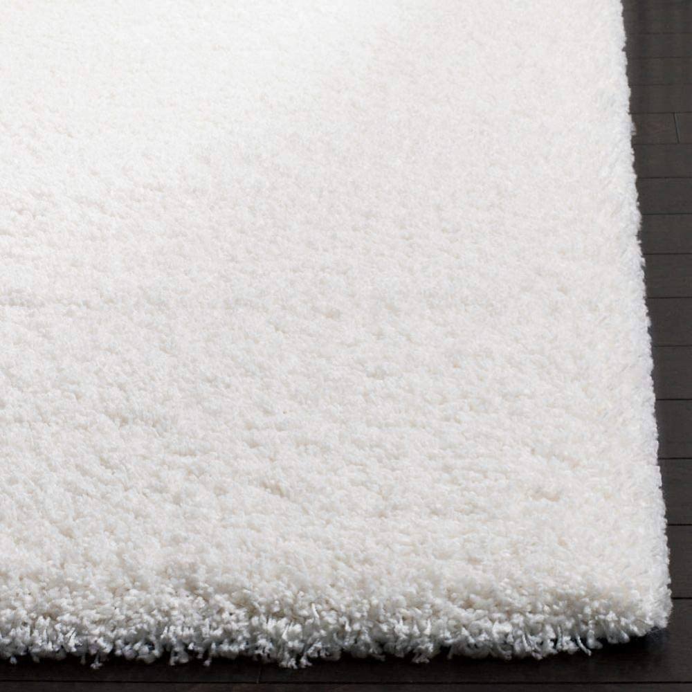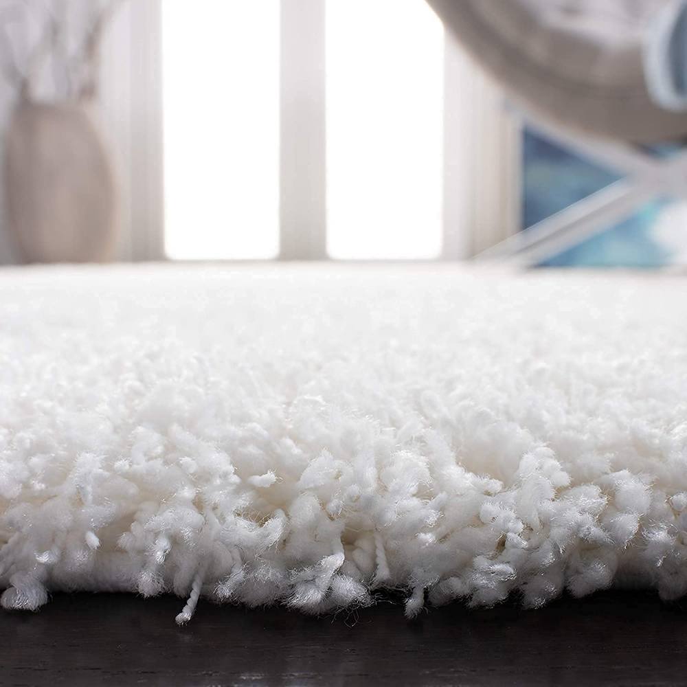 Vacuum lightly on low suction to preserve the shag texture. Avoid washing; instead, spot-clean with a damp cloth. Keep away from moisture and direct sunlight to maintain its pristine white finish.