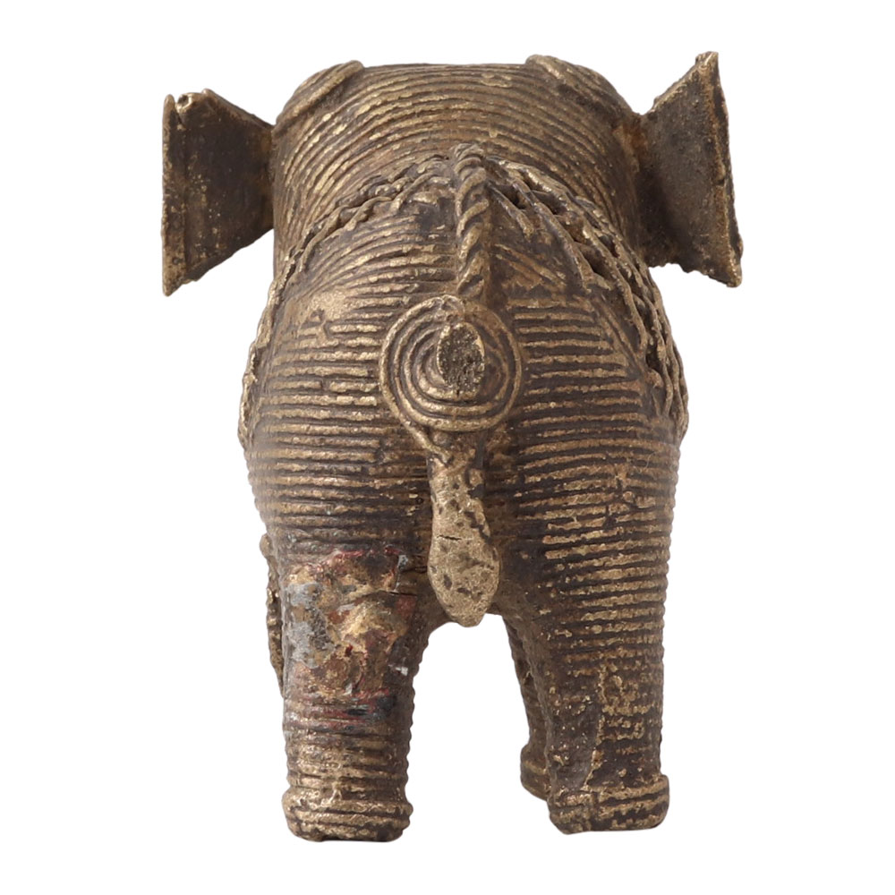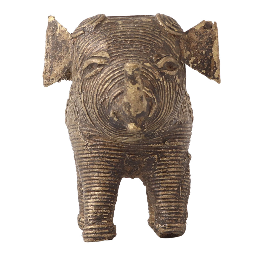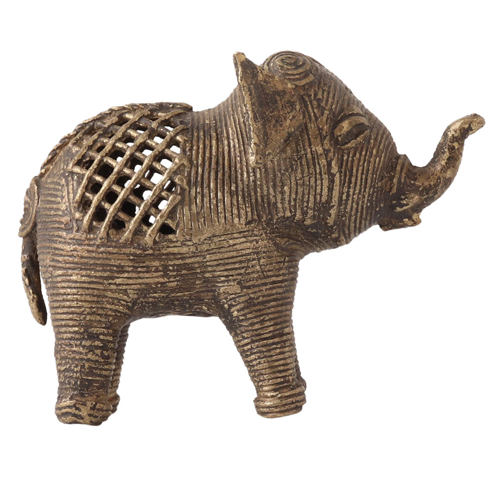 A small brass statue of an elephant handcrafted by skilled Indian artisans using traditional methods. This brass statue has an antique brown finish and made with intricate details and jali work. Elephants are widely revered in India and other Eastern cultures to bring prosperity, luck and positivity in the home. According to Vastu, placing an elephant statue at home, office, restaurant or hotel is auspicious and spreads positivity in the environment. An incredible feature to add to your vintage art collection. Place this exquisite artefact on your table, desk, shelf, reception, billing counter or altar. An auspicious gift for any special, festive and auspicious occasion for your loved ones and relatives.