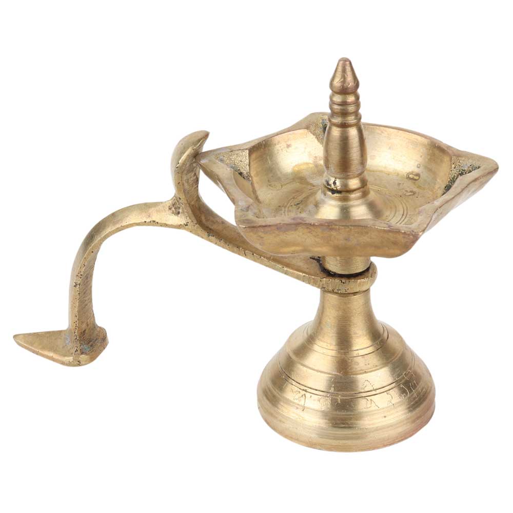 This traditional looking brass oil lamp four wicks snake head handle is essential for all puja ceremonies. Cheer up your bright festivals and interiors with this beautifully hand cast brass diya with an artistic pedestal stand. Also a great Housewarming and wedding gift to your loved ones.