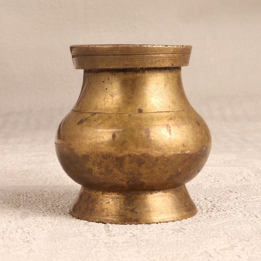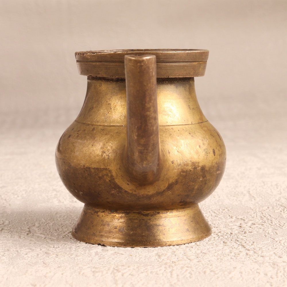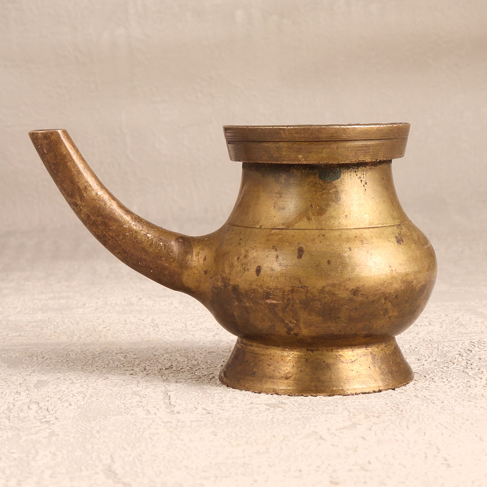 Enhance your spiritual rituals with the Brass Sagar Pot that is a sacred vessel intricately crafted in the revered South Indian Art tradition. Handcrafted by skilled Indian artisans, this pot boasts an antique brown finish, adding a touch of timeless elegance. Its significance lies in its purpose as a holy water pot, enhancing your prayer experience with a spout for a seamless pour. Made from high-quality brass, this sacred vessel is not only a symbol of divine connection but also a stunning piece of art suitable for various settings. Whether adorning your home, office, restaurant, hotel, or cafe, its intricate design and antique allure make it a captivating decorative element. This versatile piece seamlessly blends spirituality with aesthetics, making it an ideal addition to any vintage collection. Express your reverence by gifting this exquisite pot to your family, friends or relatives on special, festive, or auspicious occasions.