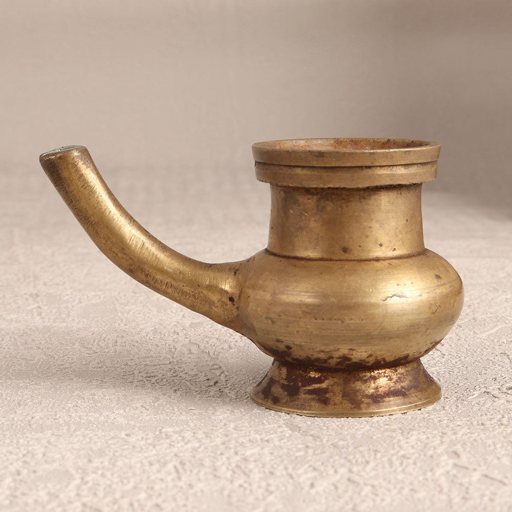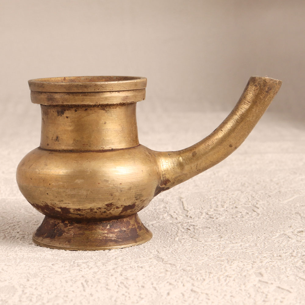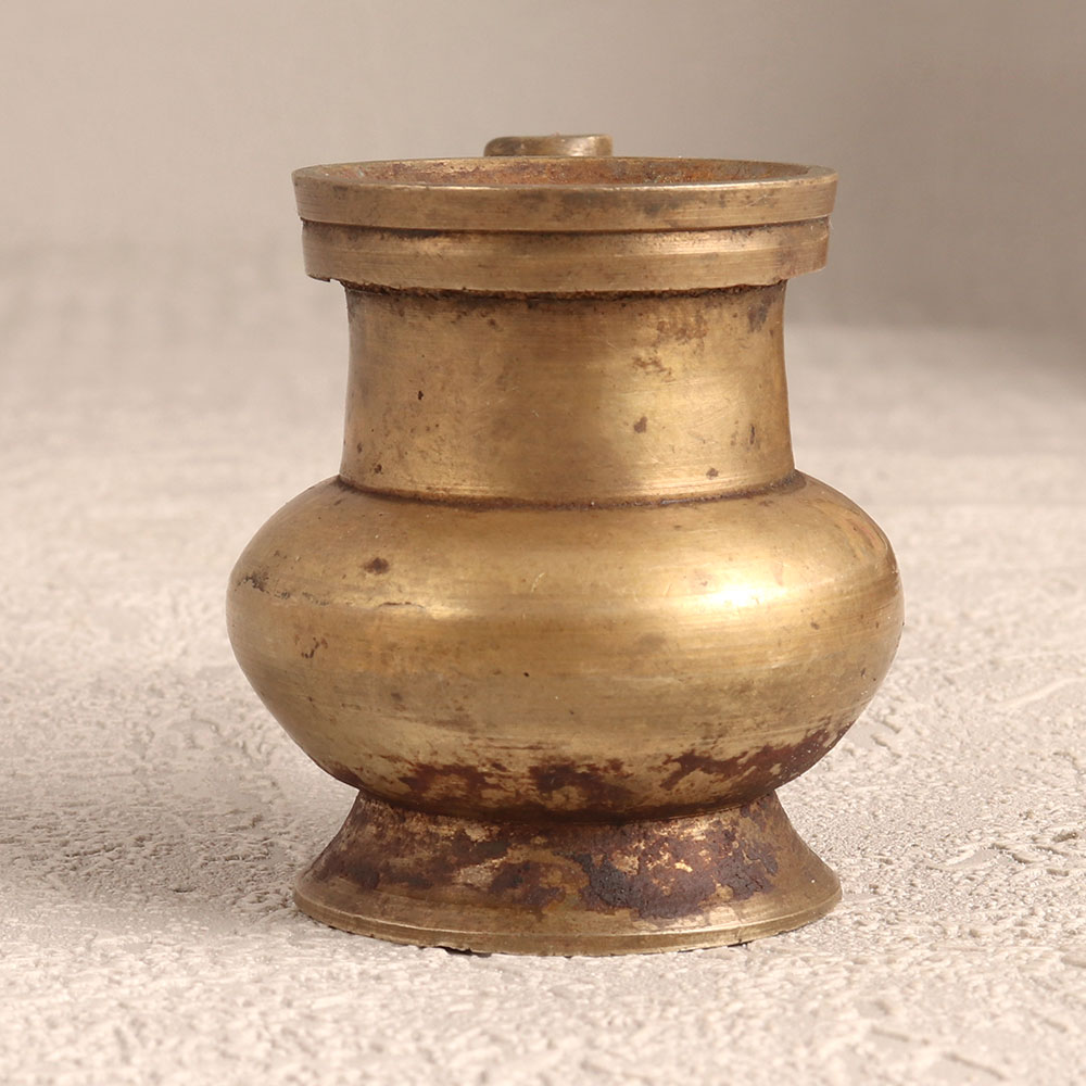 Buy a Vintage Brass Holy Water Pot online which is affectionately known as the Sagar Pot and is a testament to South Indian Artistry. Handcrafted by highly skilled and experienced Indian artisans, this pot exudes timeless charm in its antique brown finish. Crafted from high-quality brass, it epitomizes both durability and aesthetic appeal. Primarily designed for prayer rituals, the Sagar Pot boasts a convenient spout for controlled pouring of holy water. Its versatile design also makes it ideal for showcasing vibrant flower arrangements, adding an elegant touch to any sacred space or decorative setting. Whether adorning your home, office, restaurant, hotel, or cafe, this pot seamlessly integrates into diverse environments. Perfect for collectors of vintage treasures, this Sagar Pot is a unique addition to your prized possessions. Share the joy by gifting this masterpiece to your family, friends or relatives on special, festive, or auspicious occasions.