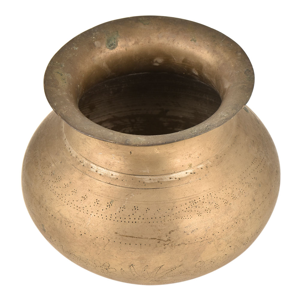 Engraved Brass Water Pot (Lota) From North India is Handmade by the Local Artisans and Each Pot has a Distinct Design No Two Pots are Identical. The Pot Carries the Distinct Design of the Time. This Exquisite Piece is a Treat for Collectors and Makes for a Wonderful Decor Accent.