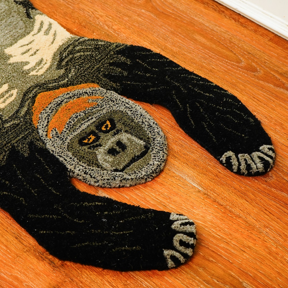 A fun rug in the shape of an animal is called Rug Groovy Gorilla . This warm, plush, and hand-tufted rug is thick. The ideal carpet for a child's room. This hand-tufted rug in the contemporary style was skillfully created with premium wool by master rug craftsmen. This rug has a cotton backing and was woven in India using only wool. Place this sophisticated carpet in your living room and bedroom, and prepare to receive many praises from your visitors.