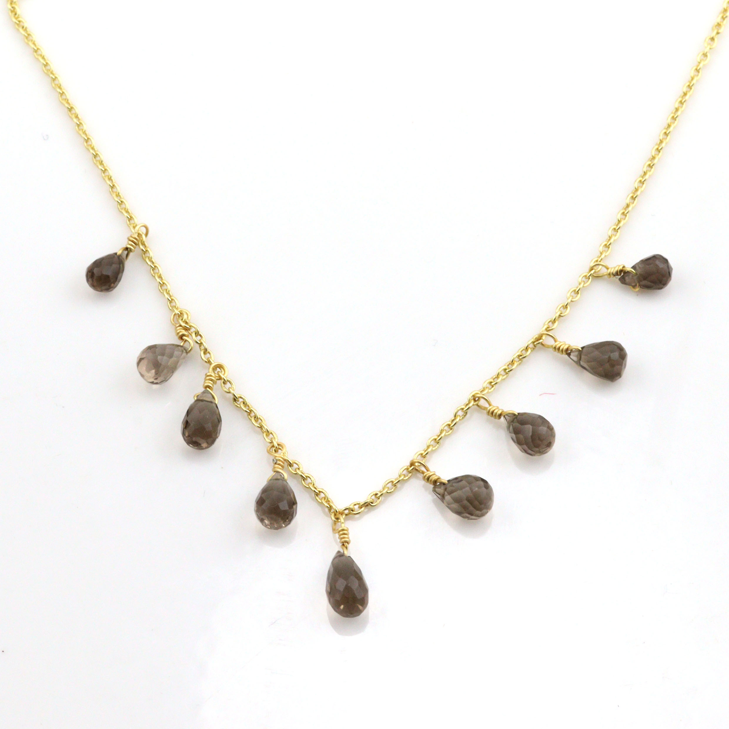 This Smoky Stone Necklace blends earthy elegance with timeless handcrafted design. Made from solid brass and finished in radiant 22K gold plating, it features a beautifully polished smoky gemstone —known for its grounding energy and warm, translucent depth. At 18 inches, the necklace sits gracefully at the collarbone, offering a versatile accessory that feels both modern and naturally enchanting. Handcrafted by skilled artisans, each piece carries a refined, organic aesthetic.