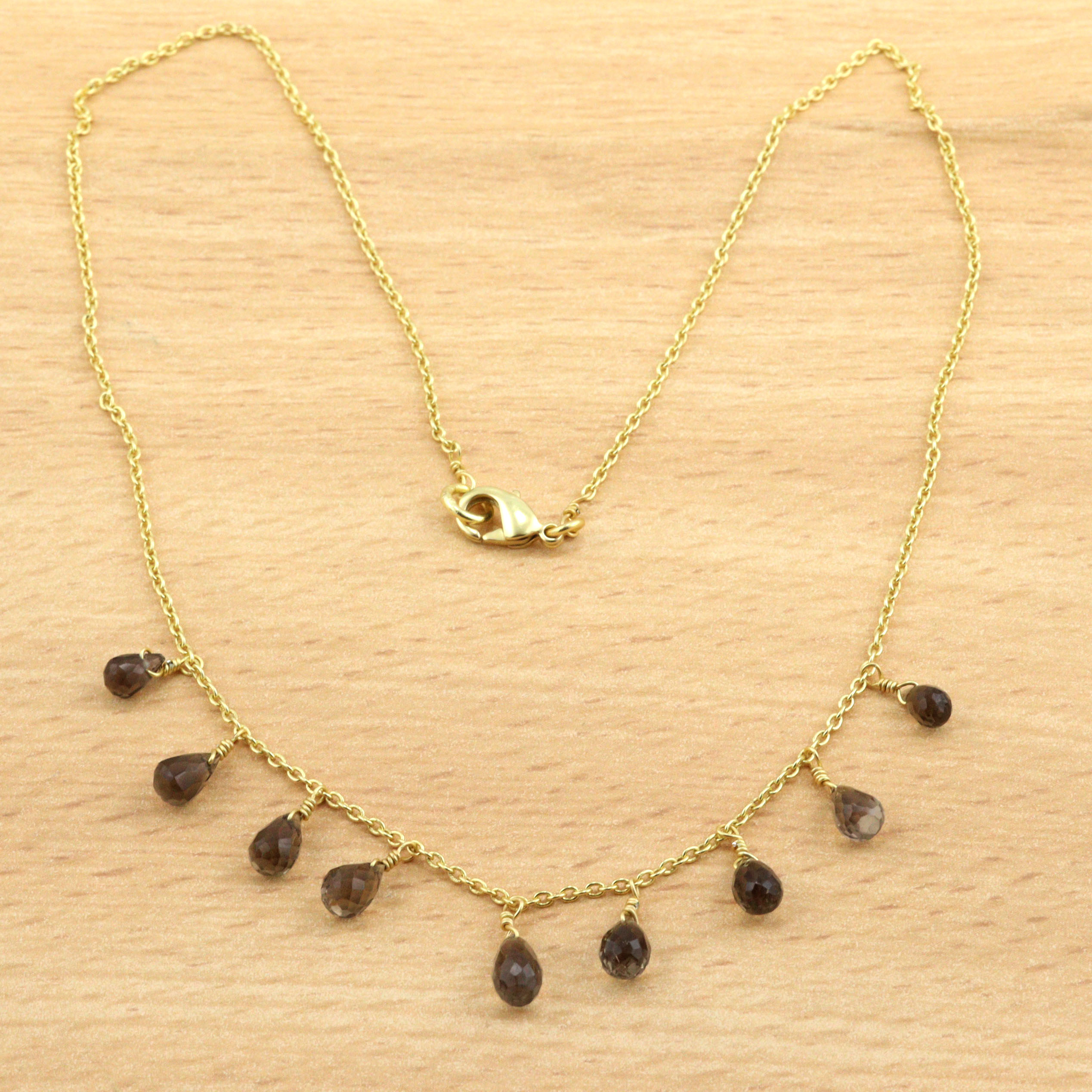Wipe gently after every wear to keep the smoky gemstone shining and maintain the gold-plated finish.