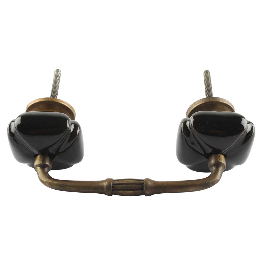 Solid Black Square Ceramic Bridge Handle. Ideal for Drawer, Dresser, Cabinet, Wardrobe, Cupboard and Almirah etc.