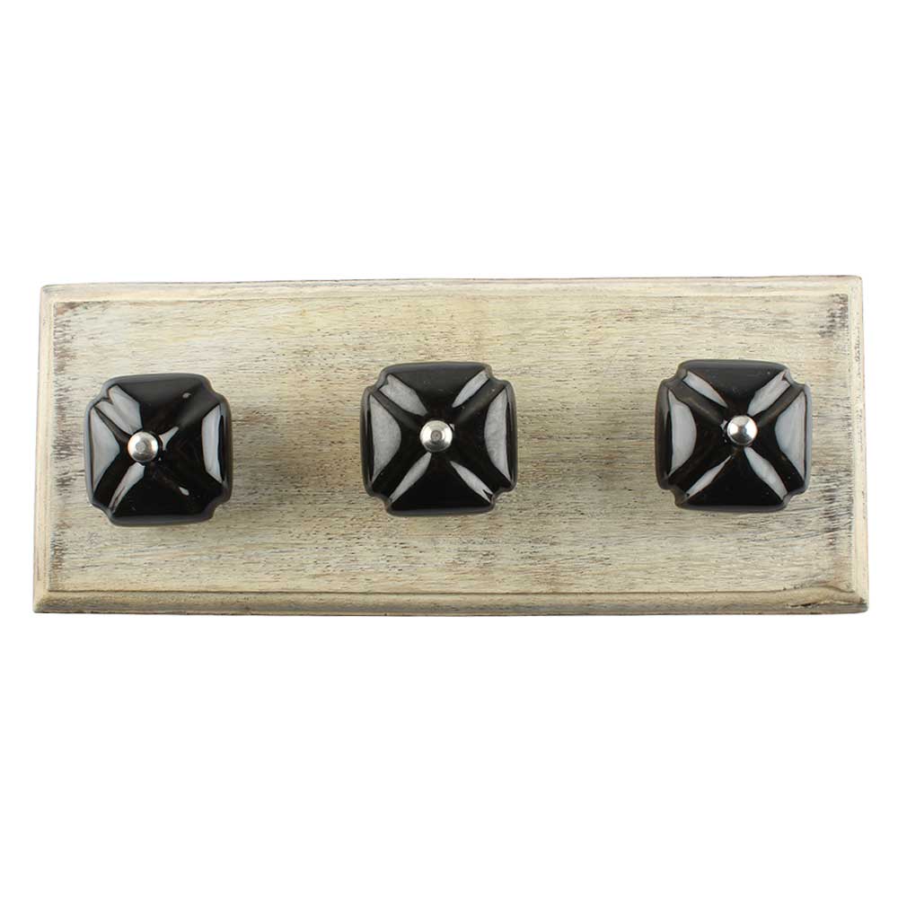 Solid Black Square Ceramic Wooden Hook. A Perfect Complement to the Soft Tone of the Wood are these White Traditional Hat and Coat Hook Made of Genuine Porcelain and Brass. It can be used to Hang Jewelry, Leashes, Towels, Scarves, Light Weight Sweaters, Caps etc.