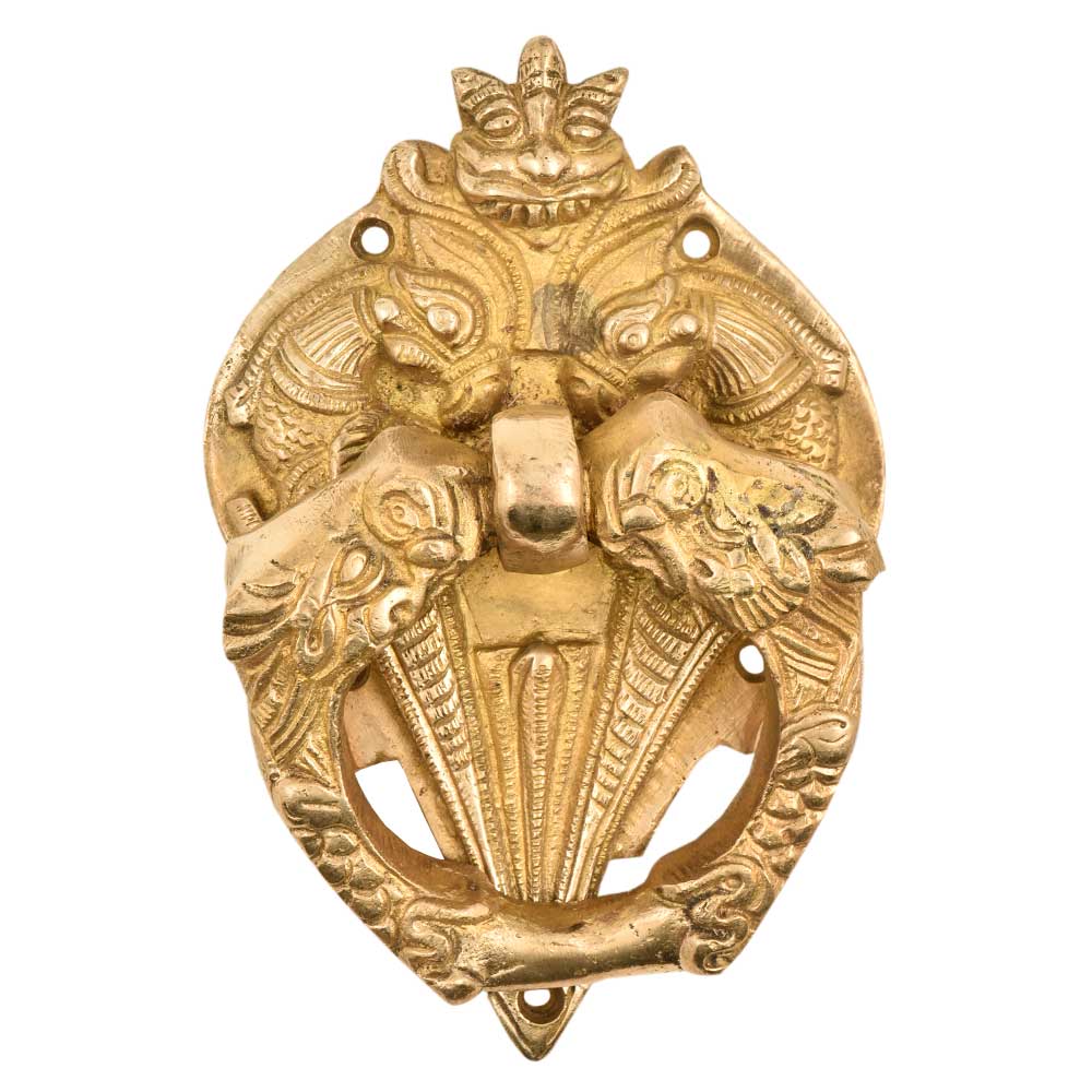 A very Solid Brass Door Knocker with birds and bat face on top as well and intricately carved door knocker ring. A truly perfect option for anyone, who needs their door hardware to both look good and work without any hassle. This piece sports a solid and sturdy structure and ensures years of flawless operation, while still being pleasing to look at