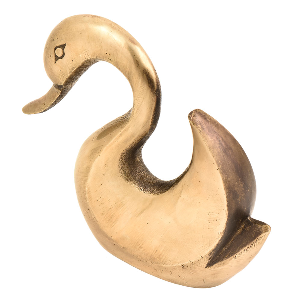 Unique handmade brass Swan figurine with a slender neck with few of its feathers upwards this cute brass swan figurine makes the perfect addition to your display shelf for your home interiors or use it as nursery decor.
