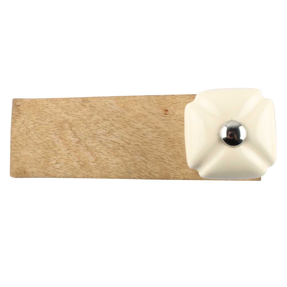 Handmade Ceramic and Wooden Door Stopper.Wooden Door Stopper with a Ceramic Knob to Carry it Easily. This Wooden Door Stopper has Glue Dots under it to Ensure that it does not Slip. It is Handmade by the Craftsmen of India and this Innovative Door Stopper won't Disappoint You.