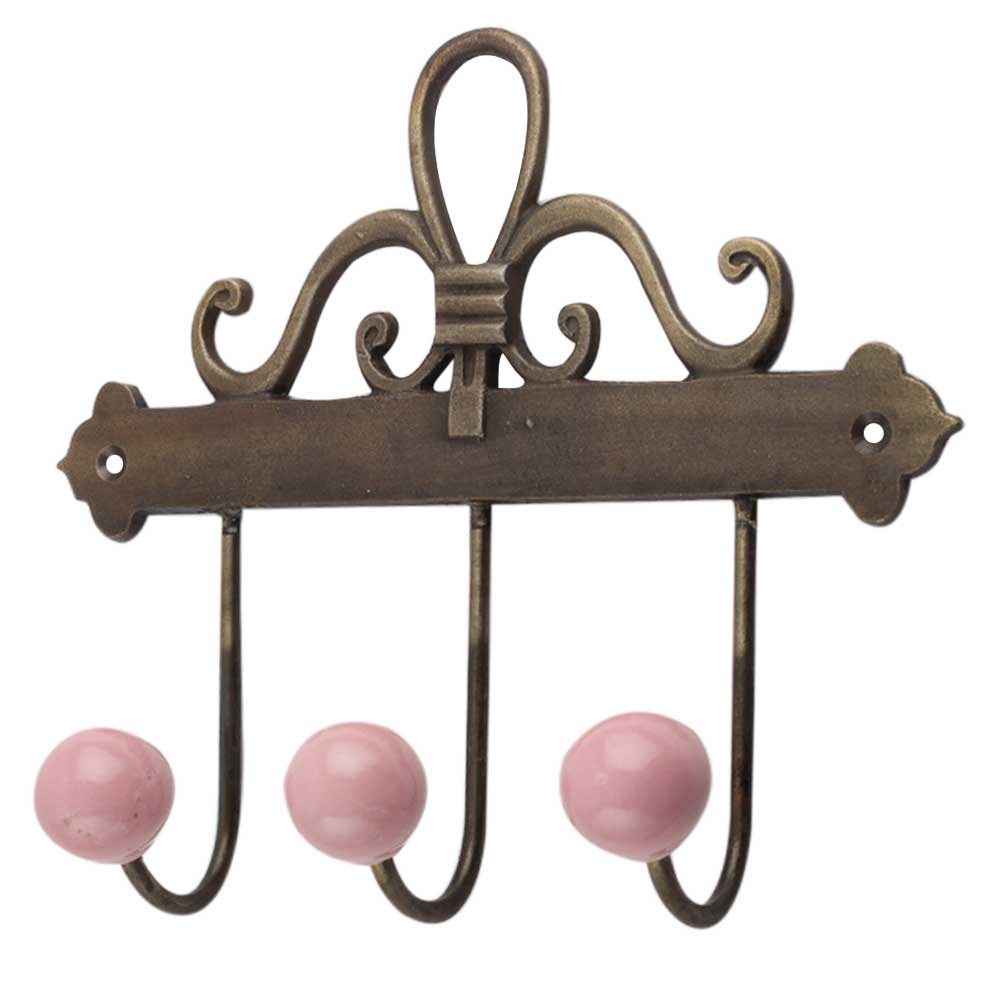 Solid Pink Ceramic Iron Hook. A Perfect Complement to the Soft Tone of the Wood are these White Traditional Hat Coat Hook Made of Genuine Porcelain and Brass. It can be use to Hang Jewellery, Leashes, Towels, Scarves, Light Weight Sweaters, Caps Etc.
