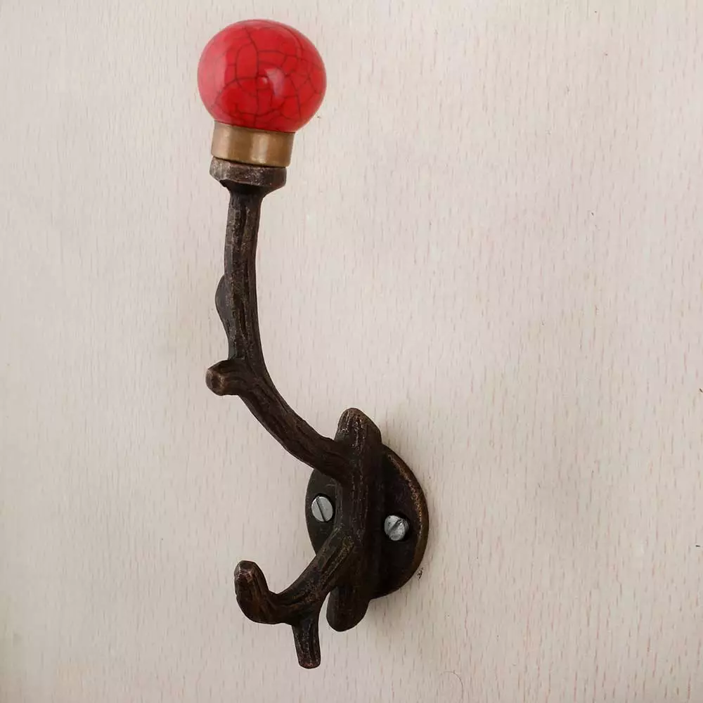 Solid Red Crackle Tree Hook-Ehg-85. When Put on Wall or Cabinet It Gives A Sturdy Look. This Hook is Strong Enough to Hold Your Cloths, Keys, Tea Cups, Coffee Mugs, Hand Towels Etc.