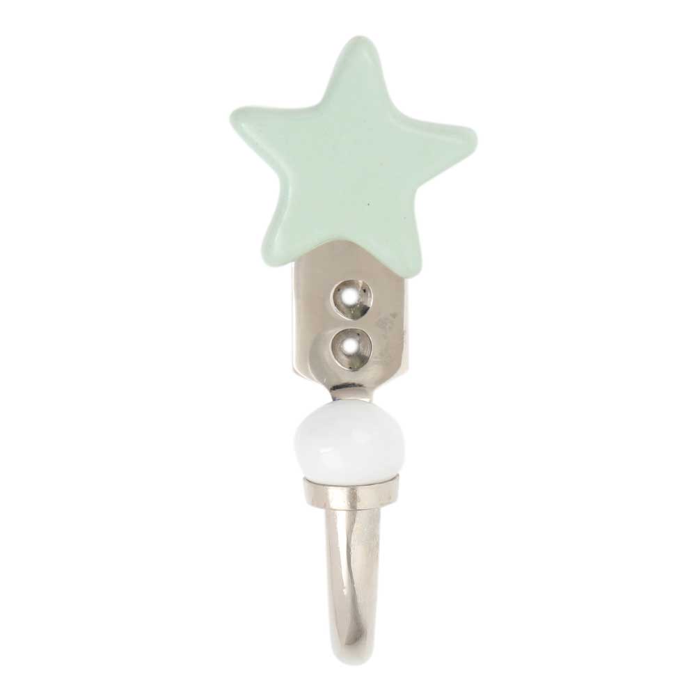 Material: Handcrafted glazed ceramic Finish: Smooth sage green glaze with a star-shaped form Installation: Screw-through-hole mounting (hardware included)