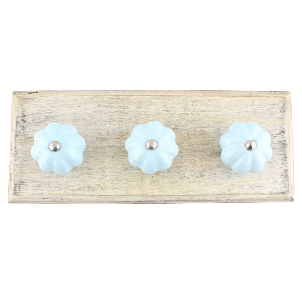 Solid Sky Blue Ceramic Melon Wooden Hooks. A Perfect Complement to the Soft Tone of the Wood are these White Traditional Hat and Coat Hook Made of Genuine Porcelain and Brass. It can be used to Hang Jewelry, Leashes, Towels, Scarves, Light Weight Sweaters, Caps etc.