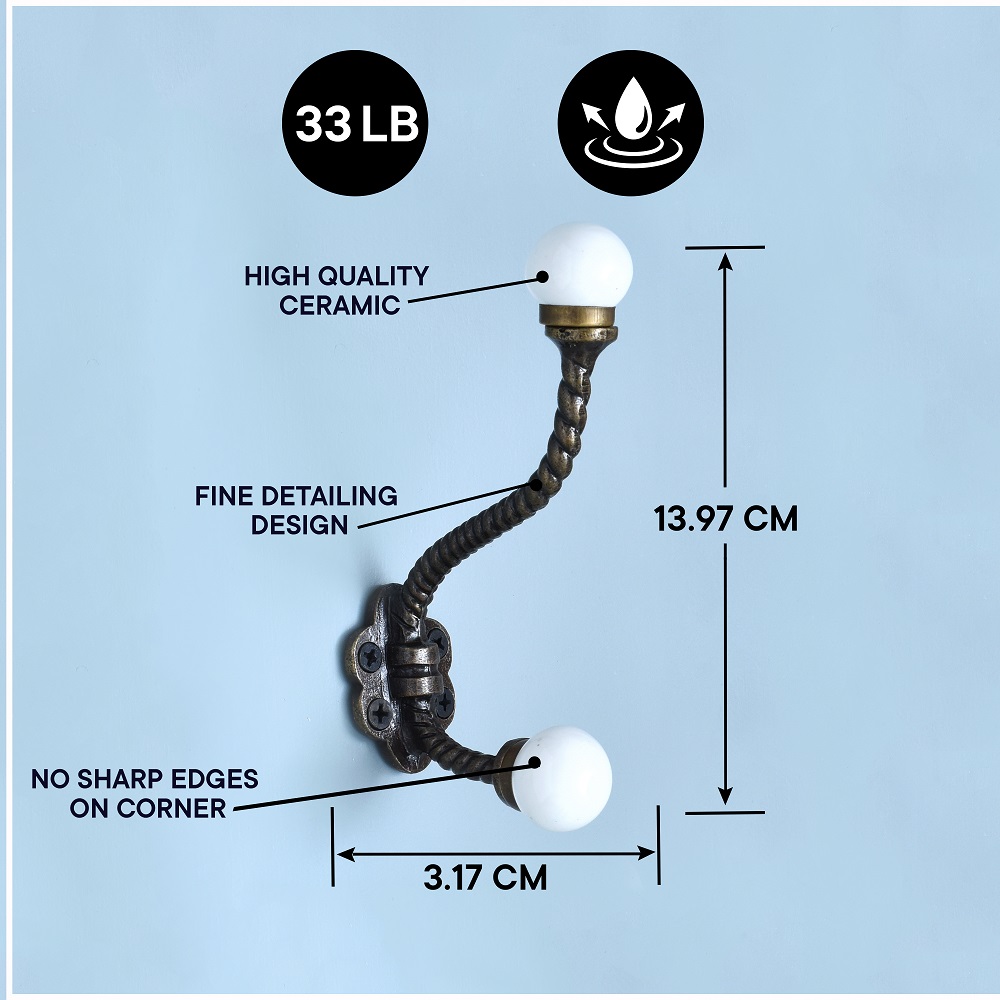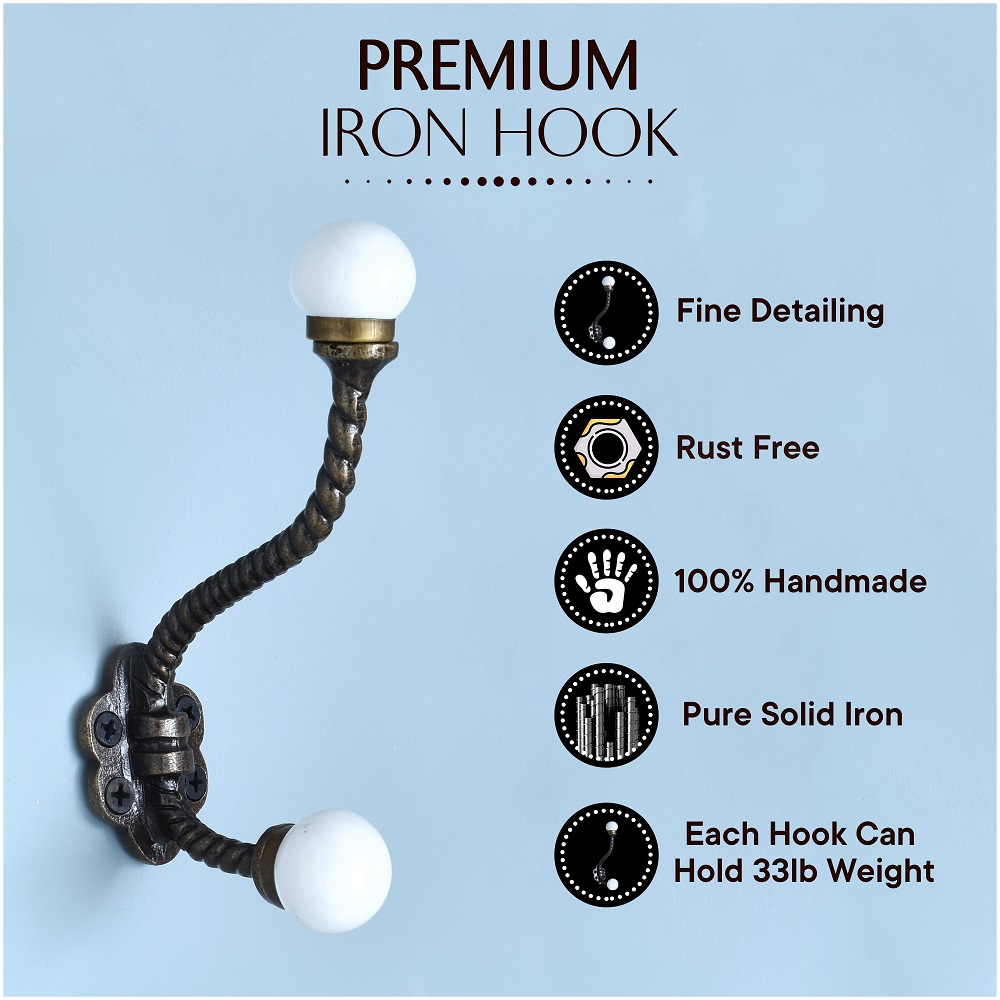 The Solid White Ceramic Iron Coat Hanger combines timeless style with everyday function. Handcrafted using durable wrought iron and a smooth, glossy ceramic knob, this coat hanger is designed for modern homes that appreciate clean aesthetics and solid construction. The white ceramic finish gives it a refined, neutral tone that blends effortlessly with any décor while standing out with its artisan-crafted appeal. Whether used individually or in multiples, this hook turns wall space into organized elegance.