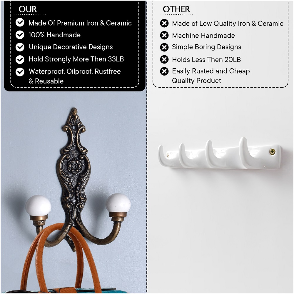 With their simple design and durable construction, the Solid White Ceramic Iron Hooks offer timeless appeal. They combine a clean aesthetic with robust functionality, making them a lasting addition to your home that’s sure to remain both beautiful and practical for years to come.