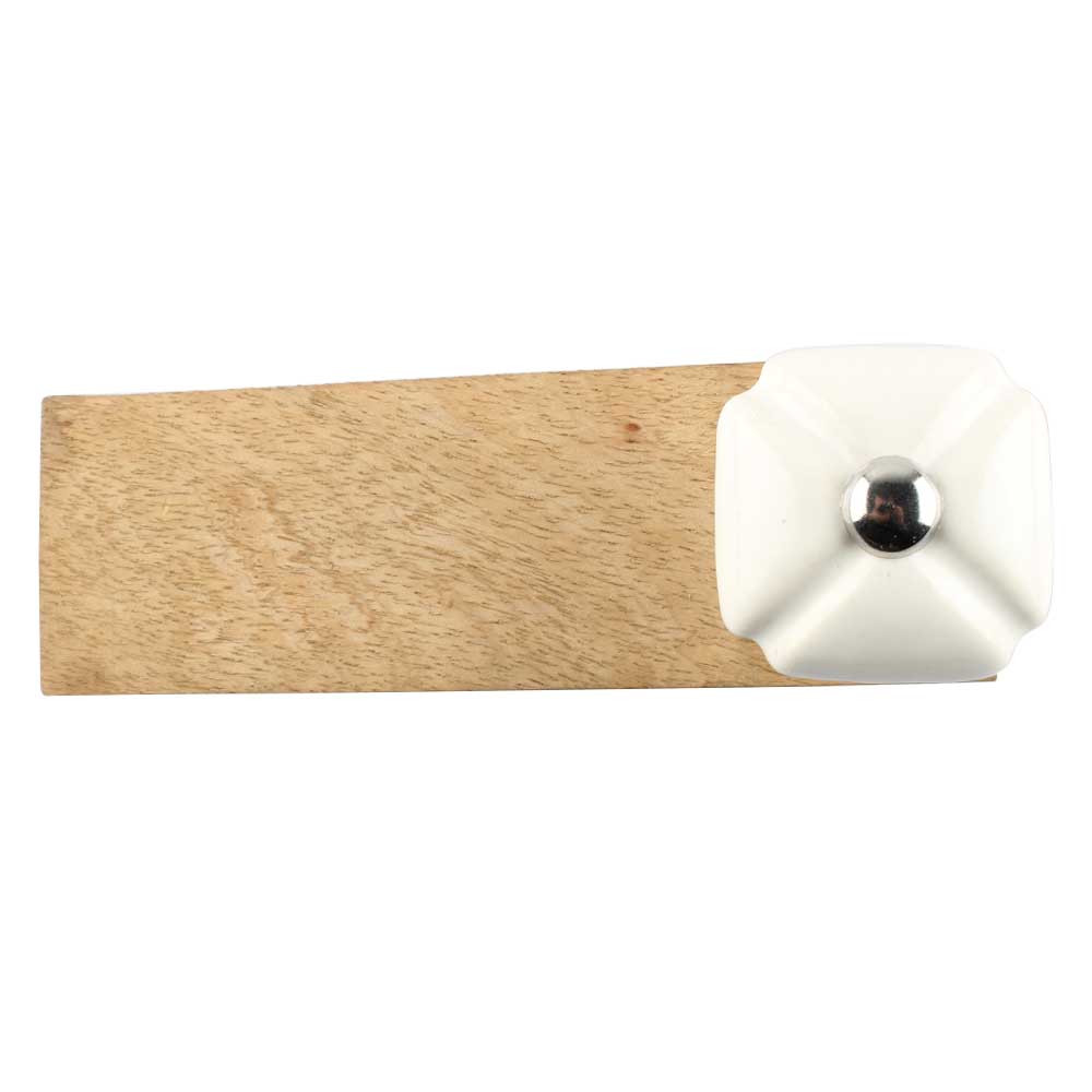 Handmade Ceramic and Wooden Door Stopper.Wooden Door Stopper with a Ceramic Knob to Carry it Easily. This Wooden Door Stopper has Glue Dots under it to Ensure that it does not Slip. It is Handmade by the Craftsmen of India and this Innovative Door Stopper won't Disappoint You.