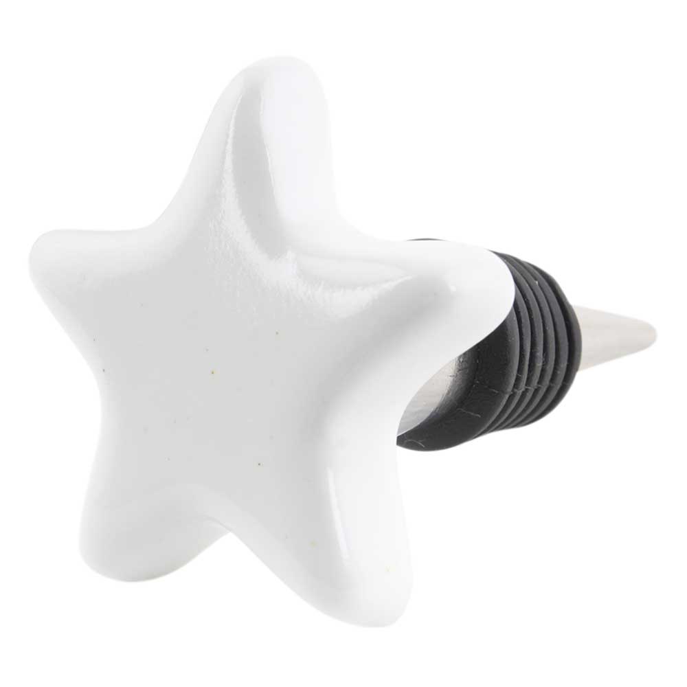 Solid White Star Ceramic Wine Bottle Stopper. Zinc Alloy Wine Bottle Stopper with Attractive Jute Bag Packaging.