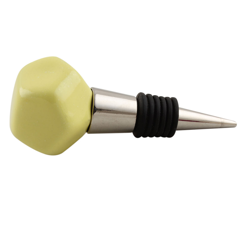 Solid Yellow Octagon Ceramic Wine Stopper. Zinc Alloy Wine Bottle Stopper with Attractive Jute Bag Packaging.
