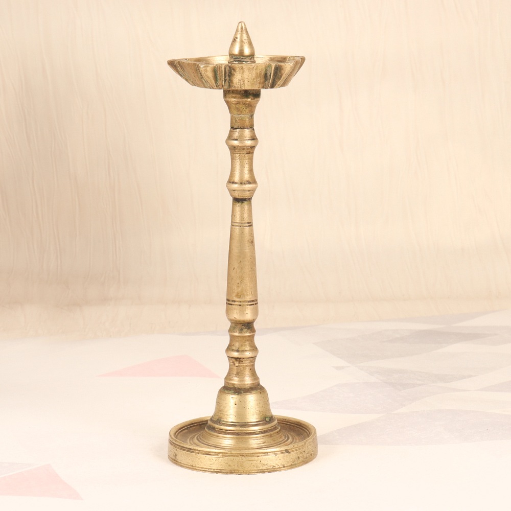 Elevate your space with the captivating allure of our Vintage Brass Oil Lamp, a stunning masterpiece of South Indian art. Crafted with meticulous attention to detail, this lamp is a harmonious blend of form and function, destined to become a cherished centerpiece in your home. Imagine the gentle, flickering light of this oil lamp illuminating your living room, casting a soft, golden glow that instantly sets the mood for relaxation, meditation, or intimate gatherings. Its classic beauty will transport you to the rich cultural heritage of South India, while the mesmerizing dance of the flames will captivate your senses and soothe your soul. Whether you're seeking to add a touch of vintage charm to your home decor or looking for a unique and thoughtful gift, this Vintage Brass Oil Lamp is the perfect choice. Embrace the timeless allure of traditional craftsmanship and let this exceptional piece become a cherished part of your daily life, elevating your space with its timeless elegance and warm, inviting ambiance.
