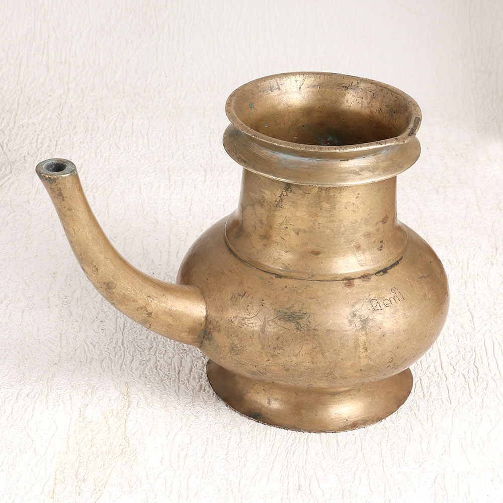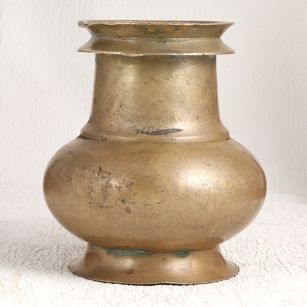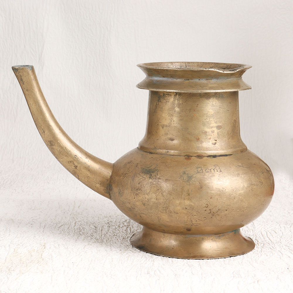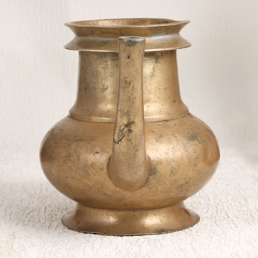 Enhance your interior decor with this vintage brass holy water pot that is a testament to the craftsmanship of skilled Indian artisans in the South Indian Art tradition. This stunning piece boasts a charming antique brown finish that exudes timeless elegance and nostalgia. Handcrafted with precision and love, this holy water pot is fashioned from high-quality brass, ensuring its durability and enduring beauty. Its unique spout design adds to its authenticity and functionality, making it not only a decorative piece but also a practical one. Versatility is its hallmark - use it to grace your home, office, restaurant, hotel, cafe, or shop as a flower pot, infusing a touch of tradition into any setting. During prayer, this pot harks back to its spiritual roots, as it was originally employed to offer sacred water to devotees. Whether you're an avid collector of vintage treasures or planning to exhibit it at an upcoming showcase, this brass holy water pot will be a standout addition. It also makes for a thoughtful and meaningful gift on special, festive, or auspicious occasions, conveying blessings and heritage to your family, friends or relatives. Elevate your surroundings and create a connection to the past with this remarkable artefact.