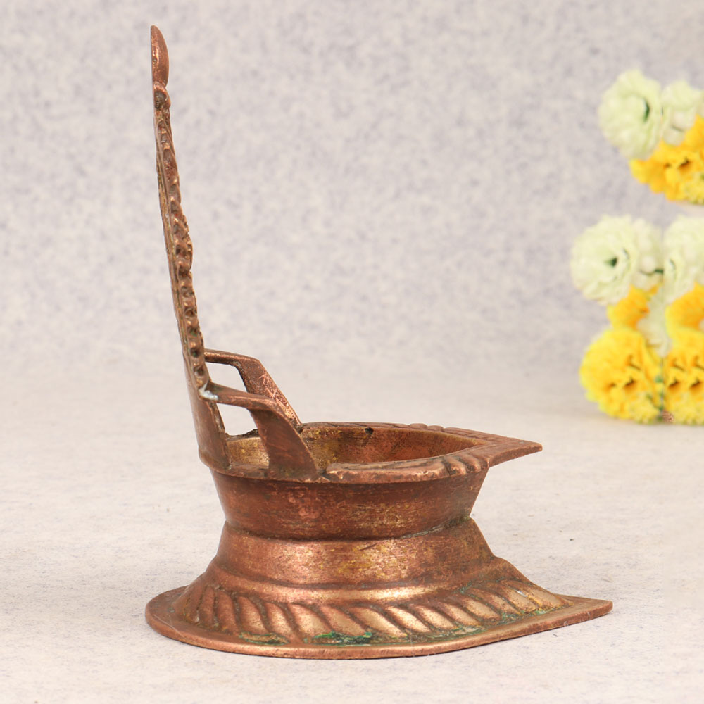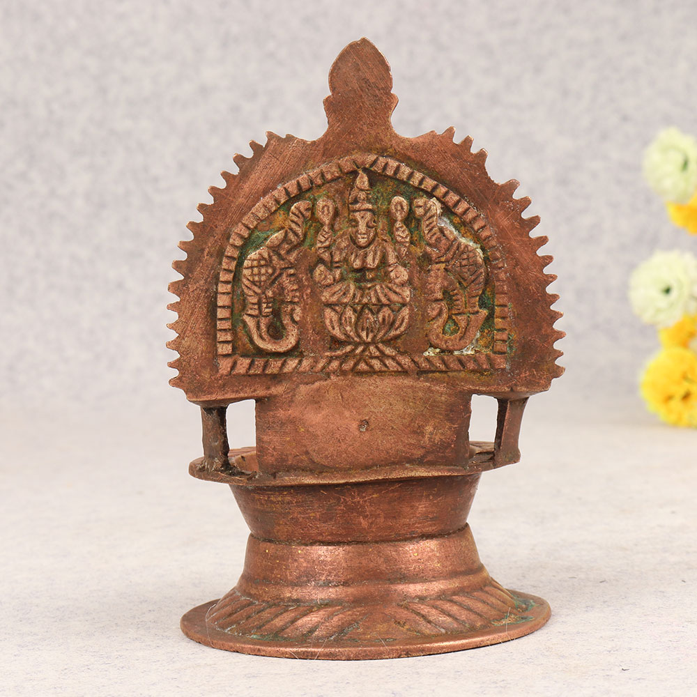 Buy a Vintage Brass Gajlakshmi Oil Lamp online that is a testament to exquisite craftsmanship and spiritual elegance. Handcrafted by talented Indian artisans in the time-honoured tradition of South Indian Art, this lamp embodies the divine aura of Gajlakshmi, the goddess of prosperity. Cast from high-quality brass, its antique brown finish adds a touch of vintage charm, making it a captivating centerpiece for prayer rooms at home, offices, restaurants, hotels, or cafes. This intricately crafted oil lamp not only serves as a sacred accessory for prayer but also as a unique addition to your vintage collection. Its rich history and cultural significance make it a thoughtful and meaningful gift for your family, friends or relatives on special, festive, or auspicious occasions. Each detail of the Gajlakshmi Oil Lamp reflects the dedication and skill of the artisans, creating a timeless piece that transcends generations. Illuminate your sacred spaces with the warm glow of tradition and spirituality.