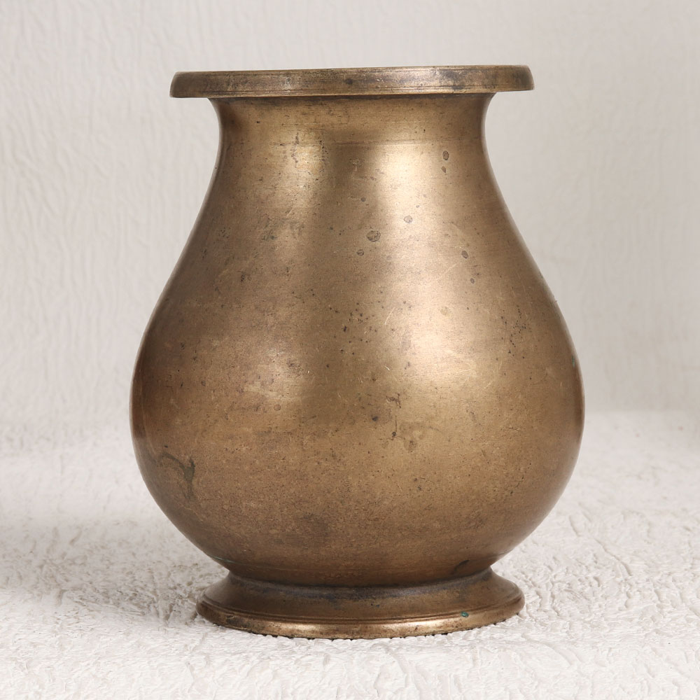 Buy a Vintage Brass Holy Water Pot online which is an artisanal masterpiece in an antique brown finish. Crafted by skilled Indian craftsmen in the time-honoured tradition of South Indian Art, this piece is a testament to the craftsmanship that has been passed down through generations. Made from high-quality brass, this holy water pot is a versatile addition to any setting. Whether adorning your home, office, restaurant, hotel, cafe, or shop, it brings an air of sophistication and cultural richness. It serves a dual purpose, as a stunning decoration piece and as an essential element during havan and worship ceremonies to hold holy water. Temples often feature this pot in their prayer rooms, as it is believed to radiate positive energy when placed in the north direction of a room filled with water. Adding this to your vintage collection or displaying it at exhibitions can be a conversation starter, reflecting your appreciation for fine craftsmanship and cultural heritage. On special, festive, or auspicious occasions, consider gifting this Vintage Brass Holy Water Pot to your family, friends or relatives.
