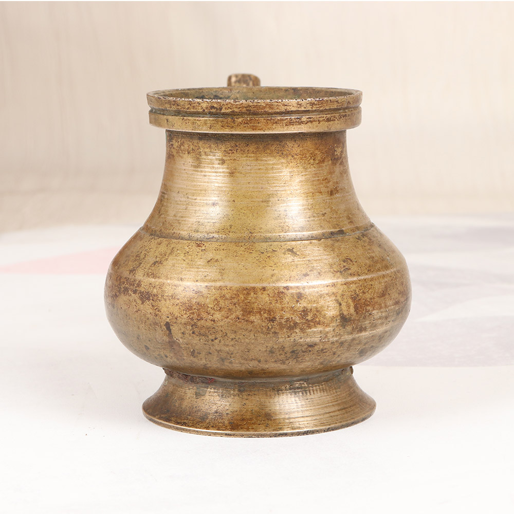 In the fast-paced modern world, it's easy to feel disconnected from the sacred. But with this stunning vintage brass holy water pot, inspired by the rich artistic traditions of South India, you can effortlessly infuse your daily rituals with a sense of timeless reverence. Fill this beautiful vessel with holy water to cleanse your meditation space, perform puja rituals, or simply imbue your environment with a sense of tranquility and intention. Its artisanal craftsmanship and timeless design will transform your spiritual practices, elevating them to an experience of profound beauty and meaning. Whether you're an experienced yogi, a devout Hindu, or simply someone seeking to cultivate more mindfulness in your life, this vintage brass holy water pot is an invaluable addition to your self-care toolkit. Display it proudly as a stunning work of South Indian art, and let it inspire you to slow down, connect with the divine, and honor the sacred in every moment.