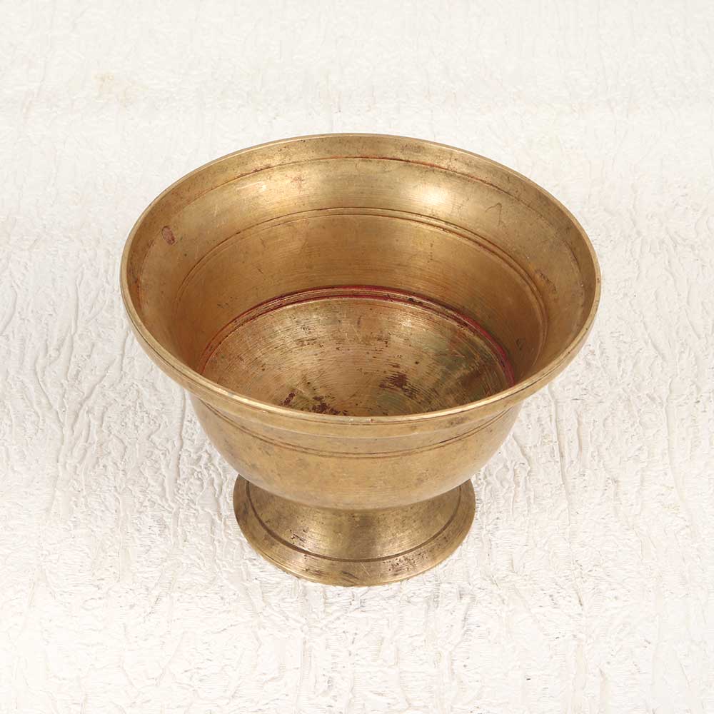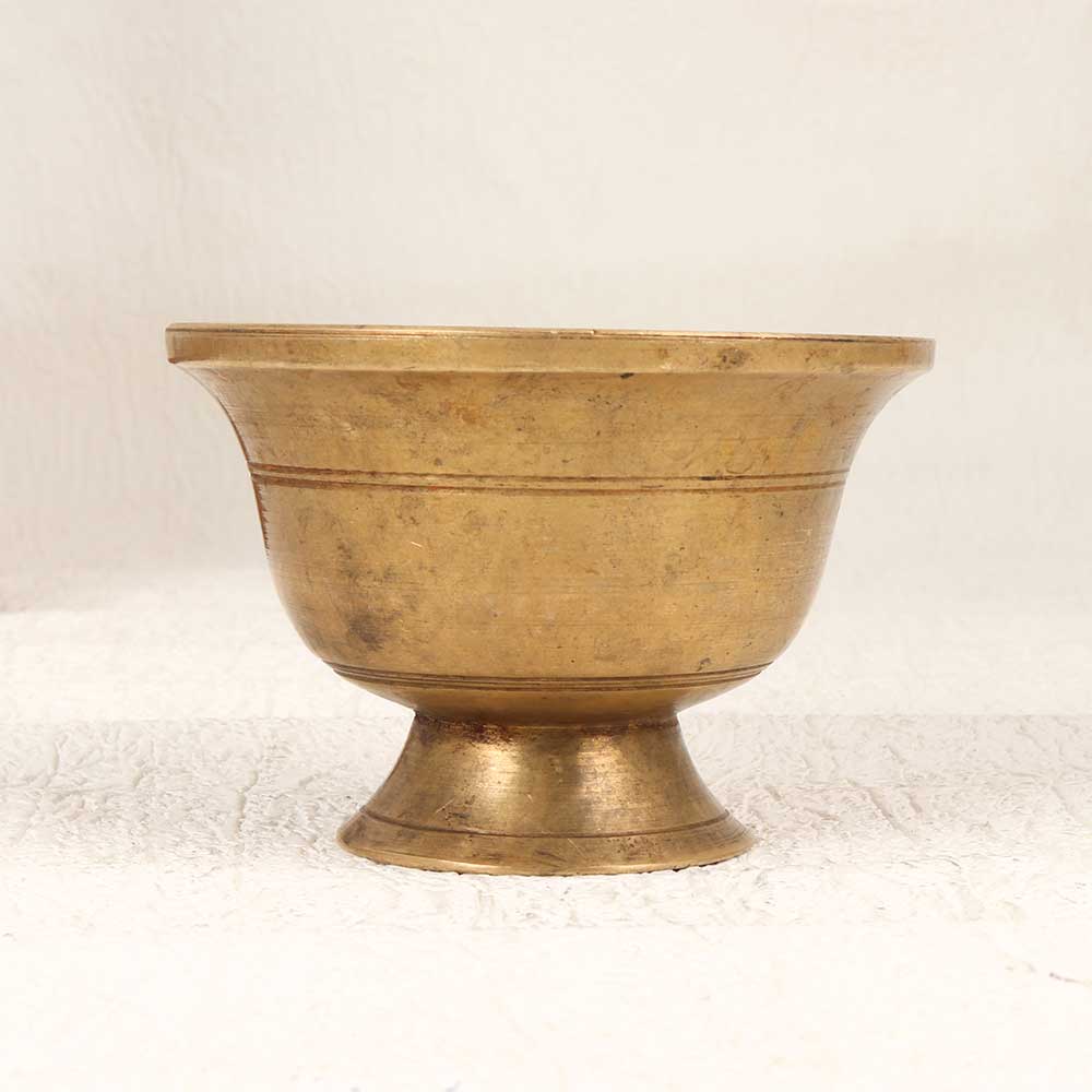 Bless your puja space with this handcrafted vintage brass Kumkum Cup, featuring a traditional South Indian design. Its elegant brown patina adds an antiqued look perfect for ceremonies and rituals. Grace your altar with this cup, using it to offer Kumkum or apply tilak during puja. Its vintage character honours Indian culture and lends tradition to daily prayers or special occasions. A thoughtful, meaningful gift for weddings, holidays, or housewarmings. For devotees who cherish heritage, this authentic Kumkum cup elevates your sacred space. Place it prominently to connect with time-honoured customs and bring dignified grace to your practice. Handcrafted brass upholds an ancient tradition.