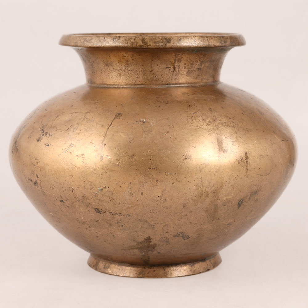 Immerse yourself in the sacred traditions of Hindu rituals with this exquisite brass holy water pot, a timeless symbol of spirituality and positive energy. Crafted by professional artisans from South India, this lota encapsulates the essence of devotion and artistry. The lota serves a myriad of purposes, from enhancing the ambiance of your living space with its antique brown finish to spreading positive energy through the placement of holy water. Its versatile design makes it an ideal choice for both personal rituals and decorative accents. Use it to offer water to revered deities like Lord Shiva and the Sun God, and let its presence elevate your worship experience. Additionally, the pot's graceful form lends itself perfectly to flower arrangements, making it an elegant choice for adorning your home, office, hotel, restaurant, cafe, or shop. Whether displayed at exhibitions, added to a vintage collection, or bestowed upon family, friends or relatives during special occasions, this brass lota is a thoughtful and cherished gift.