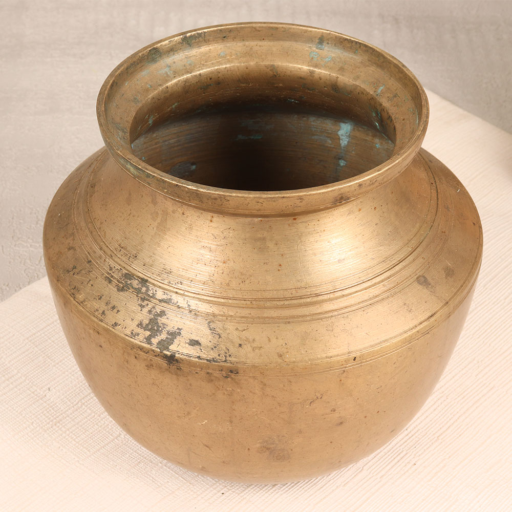 A Vintage Brass Holy Pot which is a timeless piece of art crafted with precision and passion by professional Indian artisans specializing in South Indian Art. This unique pot boasts an antique brown finish, adding a touch of nostalgia and elegance to any space. Handcrafted with meticulous attention to detail, this piece is a testament to the rich heritage of brass craftsmanship. Forged from high-quality brass, the pot is not merely a decorative item but a symbol of tradition and cultural finesse. Its versatile design makes it a perfect addition to various settings, whether at home, office, restaurant, hotel, or cafe. Embrace the beauty of nature by using it as an indoor flower pot, infusing your surroundings with charm and grace. This Vintage Brass Holy Pot transcends its functional purpose and becomes a prized possession for collectors of vintage treasures. Its rustic allure and intricate craftsmanship make it an ideal gift for your family, friends or relatives on special, festive, or auspicious occasions, symbolizing the timeless connection between art, culture, and the warmth of relationships.