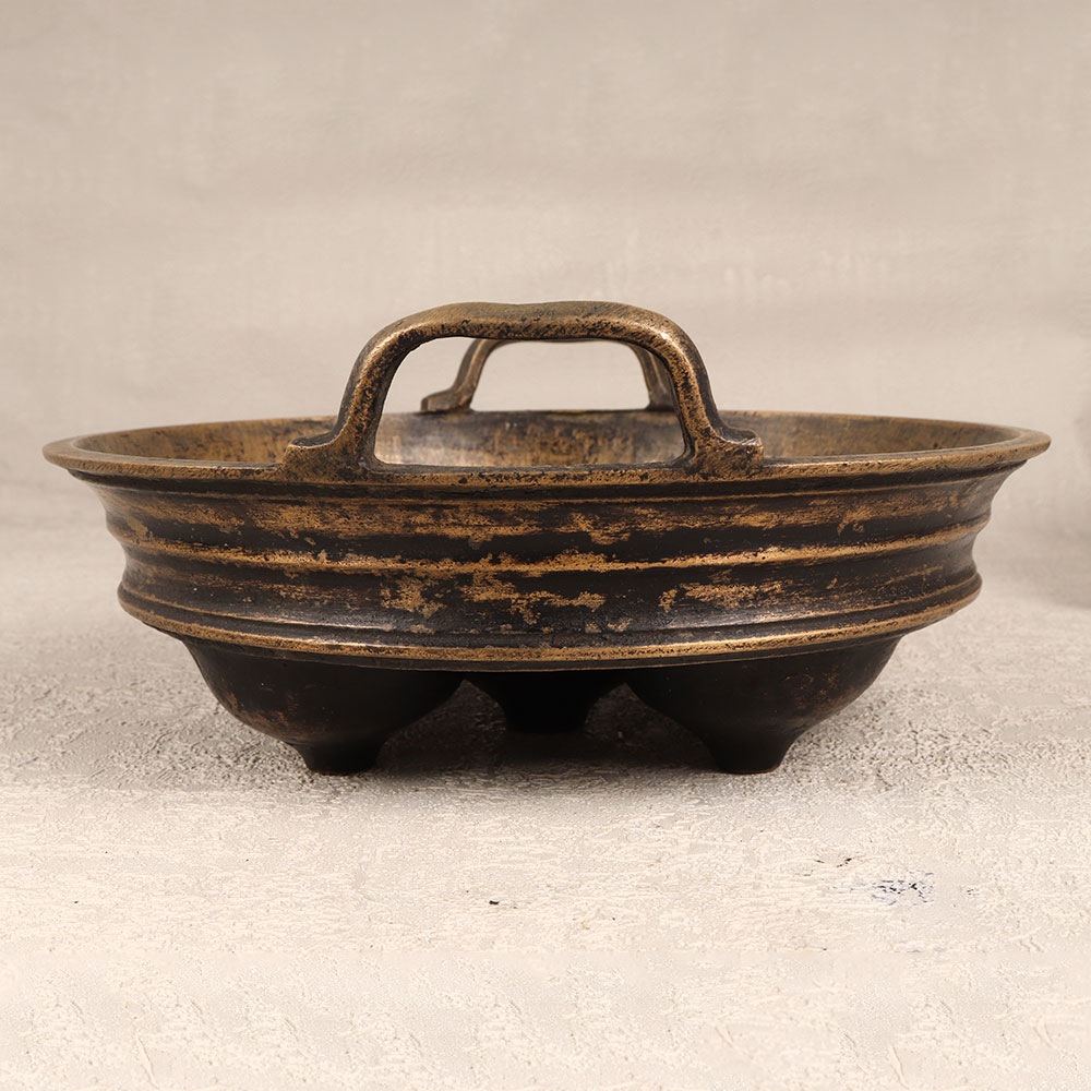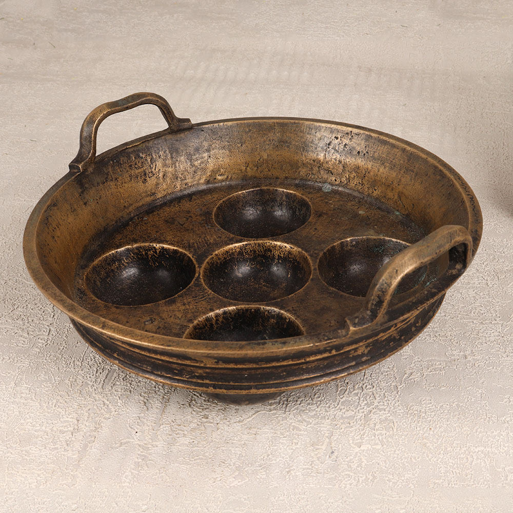 Buy a Vintage Brass Idli Making Bowl online which is a timeless piece of South Indian artistry that seamlessly blends tradition with elegance. Meticulously handcrafted by highly skilled artisans, this idli bowl boasts a distinctive antique brown finish, highlighting the inherent beauty of high-quality brass. The bowl features two delicately crafted handles, adding a touch of practicality to its aesthetic charm. Designed to evoke the rich culinary heritage of South India, this vintage masterpiece is a versatile decor accent suitable for various settings. Whether adorning the home, office, restaurant, hotel, or cafe, its captivating presence elevates any space. While its historical significance makes it a captivating addition to any vintage collection, we recommend using it primarily for decorative purposes, preserving its antique allure. This Vintage Brass Idli Making Bowl isn't just an exquisite decor item, it's a thoughtful gift for your loved ones on special, festive, or auspicious occasions. Each piece is a testament to the craftsmanship and cultural heritage of South India, making it a unique and cherished present that transcends time.