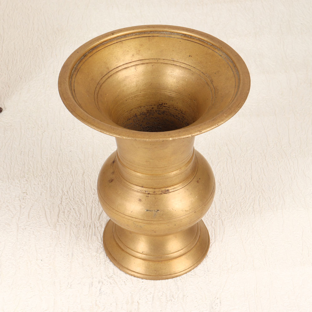 Adorn your interior with the timeless charm of our Vintage Brass Flower Pot which is a true masterpiece crafted by talented Indian artisans in the intricate style of South Indian Art. The pot boasts a rich antique brown finish, adding a touch of old-world elegance to any space. Handcrafted with precision and care, this exquisite piece is a testament to the artistry passed down through generations. Made from high-quality brass, the flower pot is not just a decorative item but a symbol of craftsmanship and heritage. Its versatile design makes it suitable for various settings, whether adorning your home, office, restaurant, hotel, or cafe. The warm, earthy tones and ornate detailing make it a captivating addition to vintage collections. This unique flower pot isn\'t just a statement piece but also a thoughtful gift for your family, friends or relatives on special, festive, or auspicious occasions. Its classic design transcends trends, ensuring a timeless appeal that will be cherished for years to come.