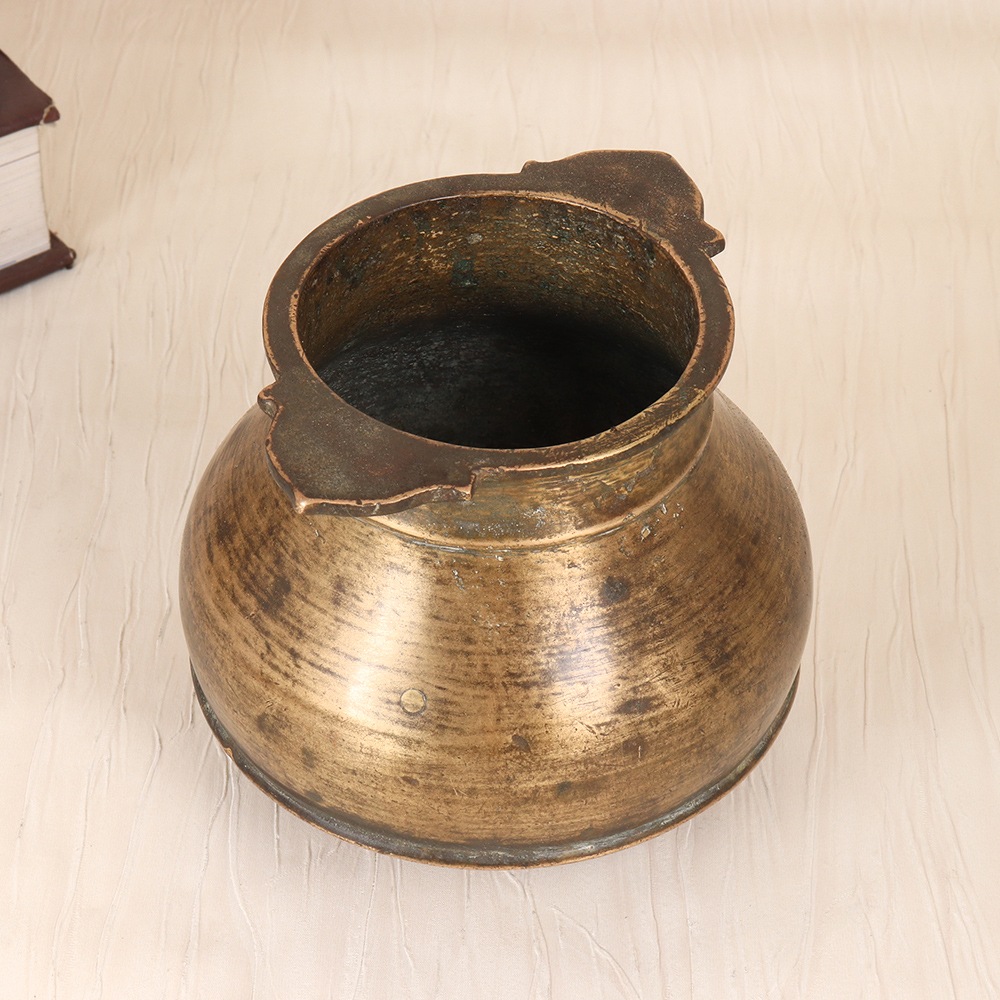 Discover the timeless allure of this exquisite vintage brass holy water pot, crafted with meticulous attention to detail in the revered South Indian Art tradition. Emanating an aura of sacredness and tranquility, this piece is a must-have for anyone seeking to deepen their spiritual practice or add a touch of serene elegance to their home. The plain brown finish of the brass lends an understated sophistication, allowing the inherent beauty of the material to shine. Whether you're an avid practitioner of Hindu, Buddhist, or other Eastern faiths, or simply someone who appreciates the calming influence of ritual, this holy water pot will become an indispensable part of your spiritual journey. Fill it with blessed water and use it to anoint your forehead, cleanse your space, or infuse your meditation with a heightened sense of reverence. Its compact size makes it easy to display on your altar, bookshelf, or side table, serving as a constant reminder to pause, reflect, and connect with the divine. Invest in this timeless piece of South Indian Art and elevate your daily rituals into a truly transformative experience. Let the vintage brass holy water pot become a cherished companion on your path to inner peace and spiritual fulfillment.
