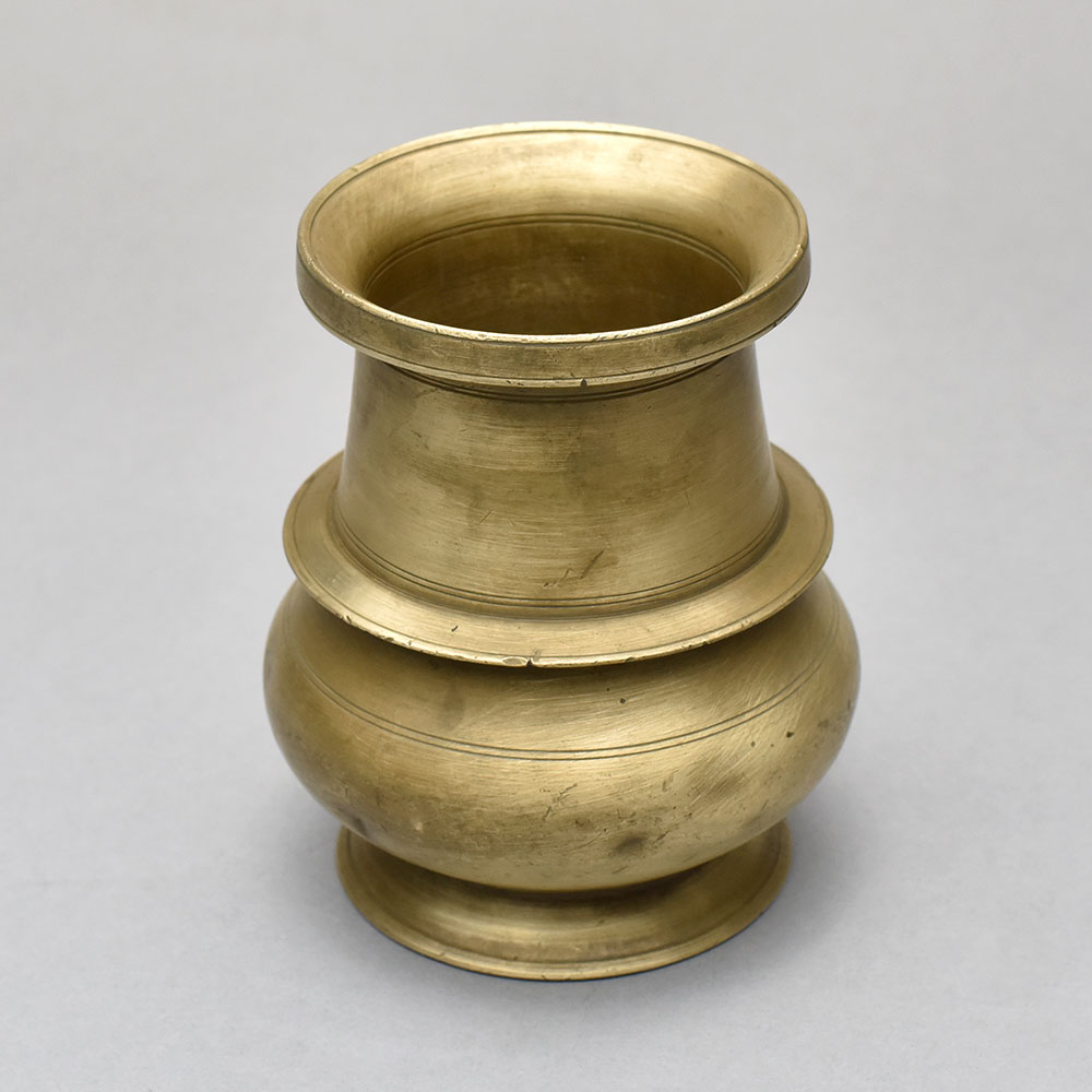 Bring the sacred rituals of ancient India into your home with this stunning Vintage Holy Brass Water Pot. Crafted with reverence and precision in South India, this timeless piece will elevate your decor and imbue your space with a sense of timeless spirituality. This Vintage Holy Brass Water Pot is more than just a decorative accent - it's a functional and meaningful piece that can be used in a variety of spiritual practices. Fill it with holy water to cleanse your space, arrange fresh flowers as an offering, or use it to hold incense for meditation. Its simple yet elegant design makes it a perfect complement to altars, shelves, or tabletops, imbuing your home with a sense of ancient wisdom and reverence. Whether you're looking to add a touch of sacredness to your decor or seeking a vessel for your daily rituals, this Vintage Holy Brass Water Pot is a must-have. Its solid construction and timeless appeal will ensure it becomes a cherished heirloom, passed down through generations as a reminder of the enduring power of tradition.