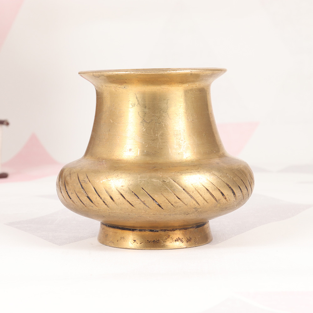 Discover the timeless elegance of South Indian tradition with this exquisite brass holy water pot. Crafted with meticulous attention to detail, this vessel embodies the sacred rituals and spiritual heritage of the region. This holy water pot is more than just a functional object - it's a work of art that invites deeper connection to the divine. Its simple, understated design belies the layers of meaning and tradition infused within. Whether you're seeking to deepen your personal practice or looking to bring sacred energy into your space, this brass beauty will become an indispensable companion. Imagine the rich, resonant sound of water flowing from this timeless vessel, the gentle clink of the metal as you perform your rituals. Allow the weight and heft of the brass to ground you, granting a sense of reverence and intention to your spiritual activities. With this holy water pot, you'll elevate your daily life into a celebration of the ancient wisdom of South India. Don't just decorate your space - transform it into a sanctuary of sacred energy. Invite the timeless beauty and spiritual essence of this brass holy water pot into your home, and experience the profound impact it can have on your life.