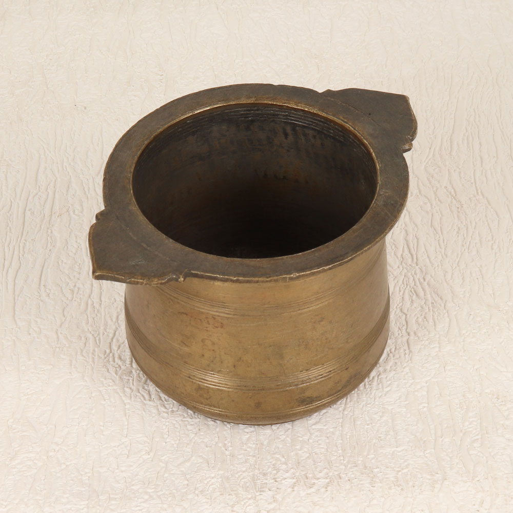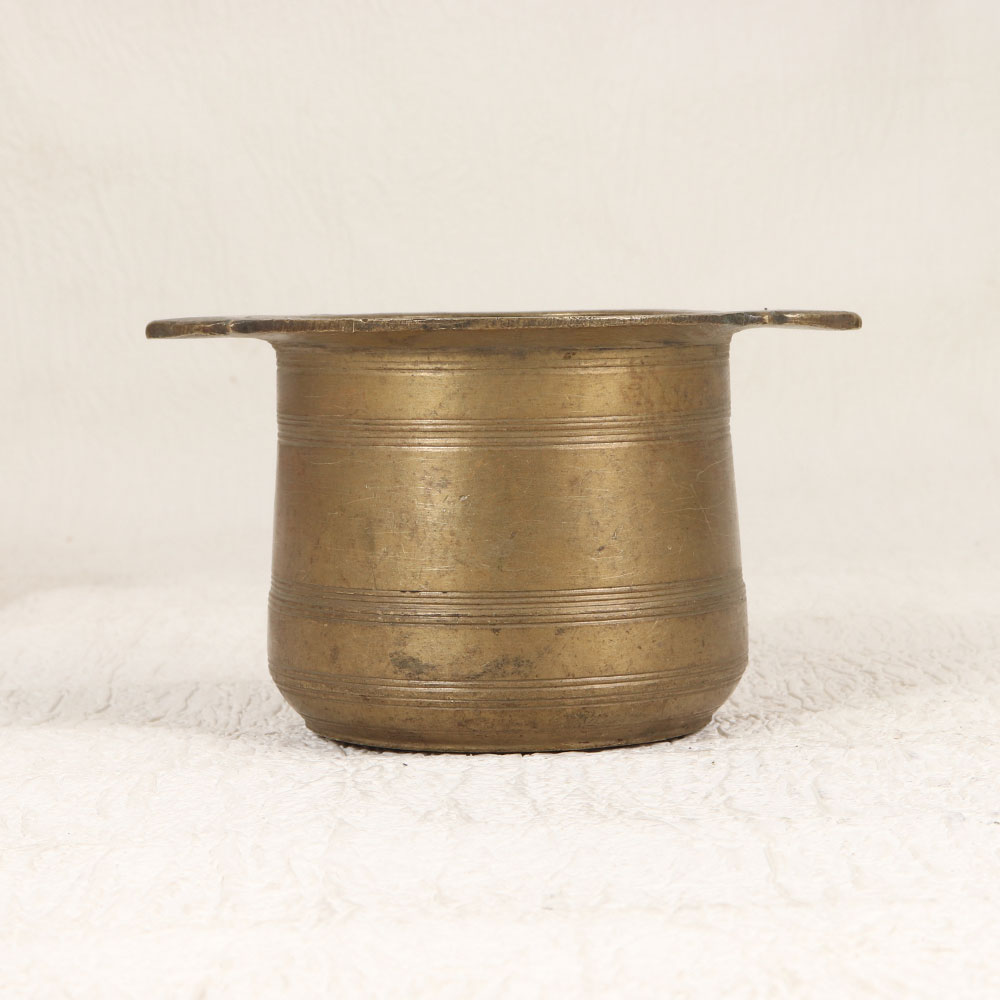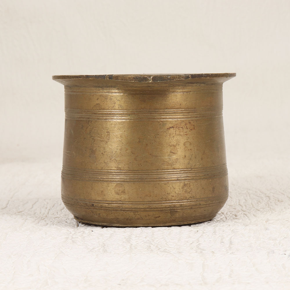 This Vintage Brass Holy Panchpatra Pot is a timeless piece crafted for spiritual moments and cherished aesthetics. Handcrafted by highly skilled Indian artisans, this pot emanates the rich heritage of South Indian Art. Cast in high-quality brass, its antique brown finish adds an authentic touch, making it a unique addition to your prayer space or a distinguished indoor flower pot. The Panchpatra Pot holds profound significance during prayers, rituals, and havans, serving as a vessel for holy water. Its classic design reflects the artistry of traditional craftsmanship, showcasing intricate detailing that captures the essence of cultural elegance. Versatile in its use, this pot seamlessly blends into various settings, whether it's your home, office, restaurant, hotel, or cafe's prayer room. Elevate your surroundings with a touch of vintage charm, as this piece is not only functional but also a striking collectible for enthusiasts. Share the gift of spirituality and beauty by presenting this Panchpatra Pot to your family, friends or relatives on special, festive, or auspicious occasions.