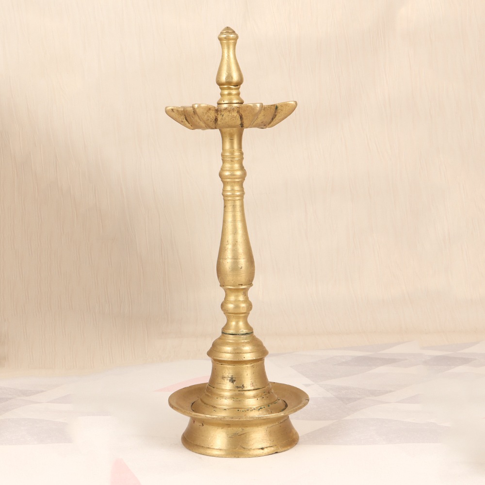- Handcrafted brass oil lamp with 7 jyots