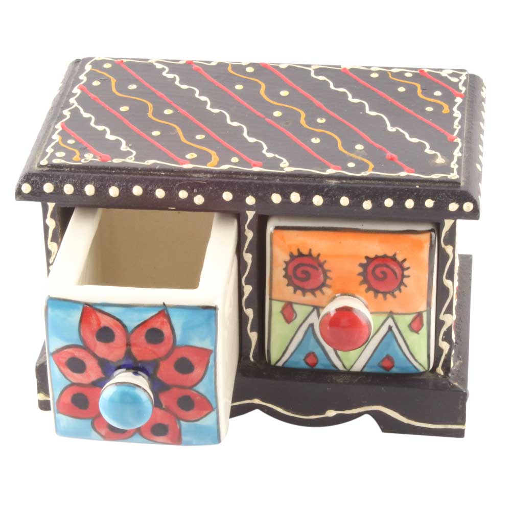 Material: Wood and Ceramic Size: Height: 4 inches, width: 6.5 inches and depth: 3.75 inches Approx Handmade