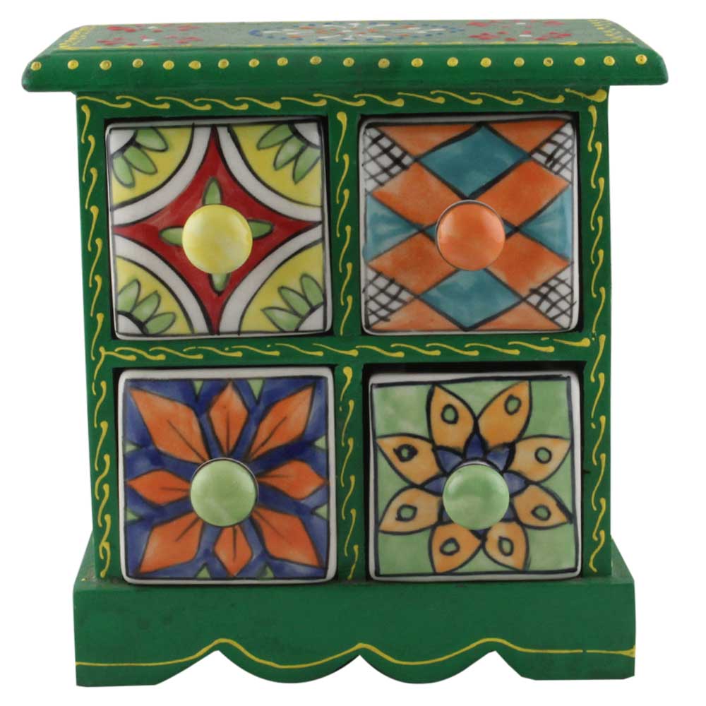 Material: Wood and Ceramic Size: Height: 6.75 inches, width: 6.25 inches and depth: 4.25 inches Approx Handmade