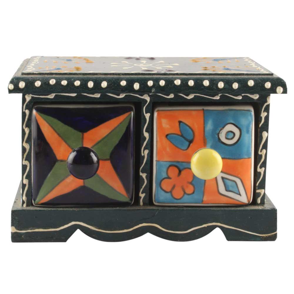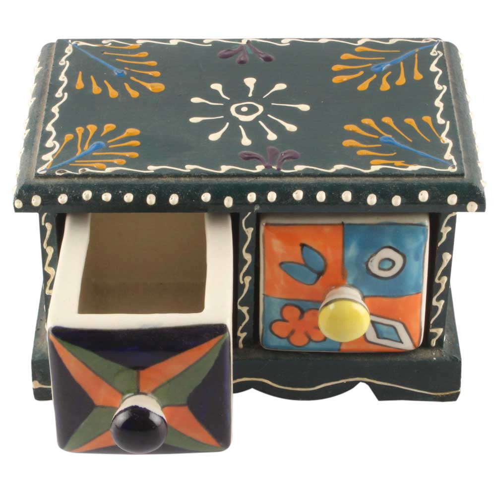 Material: Wood and Ceramic Size: Height: 6.75 inches, width: 6.25 inches and depth: 4.25 inches Approx Handmade