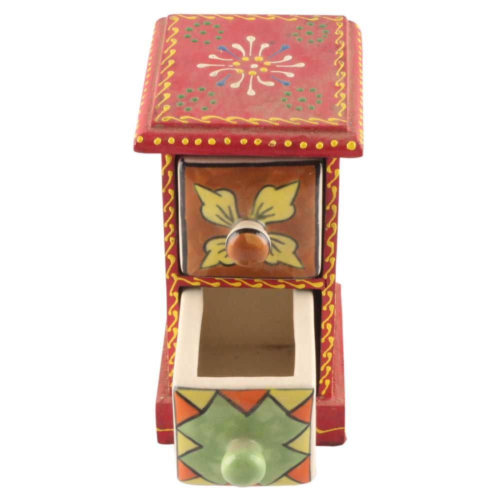 Material: Wood and Ceramic Size: Height: 6.75 inches, width: 6.25 inches and depth: 4.25 inches Approx Handmade