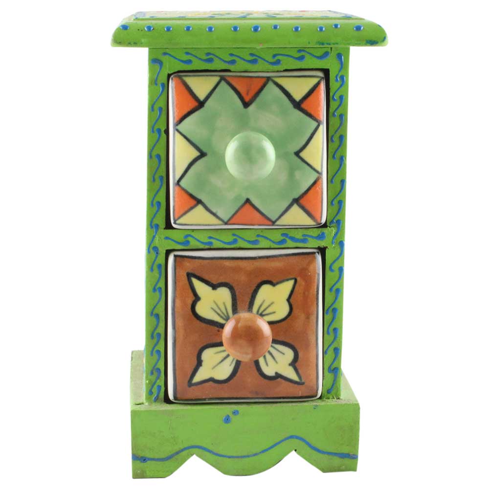 Material: Wood and Ceramic Size: Height: 6.75 inches, width: 6.25 inches and depth: 4.25 inches Approx Handmade
