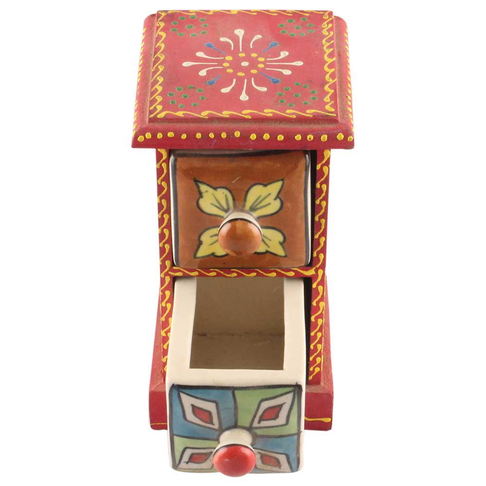 Material: Wood and Ceramic Size: Height: 6.75 inches, width: 6.25 inches and depth: 4.25 inches Approx Handmade