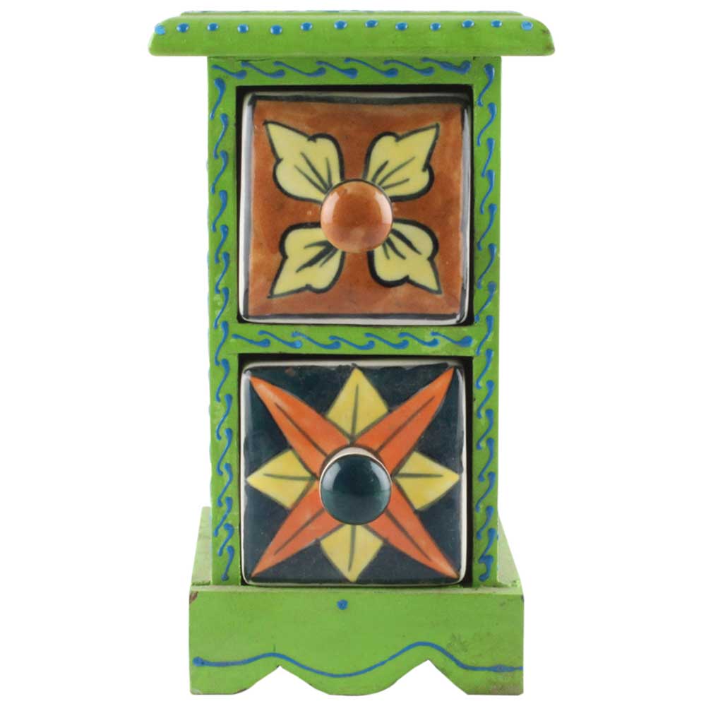 Material: Wood and Ceramic Size: Height: 6.75 inches, width: 6.25 inches and depth: 4.25 inches Approx Handmade