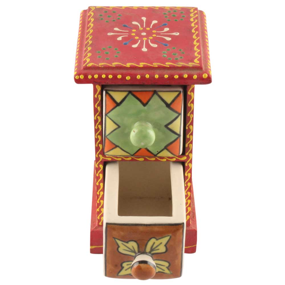 Material: Wood and Ceramic Size: Height: 6.75 inches, width: 6.25 inches and depth: 4.25 inches Approx Handmade